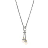 Cute heart motif charm is hanging from the toggle lock accents the adorable style of this rolo chain necklace. Crafted in rhodium plated sterling silver this necklace comes in 16 inches and 18 inches.