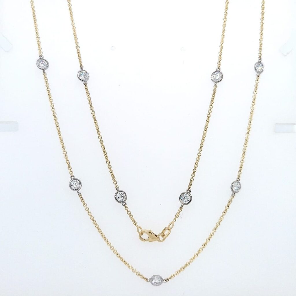 14KTTG Diamonds by the Yard – 7 Burnish Set Lab Created Diamonds = 1.05 CTS F VS – 18″ 14KYG Chain with 14KWG Bezels – 3.4MM