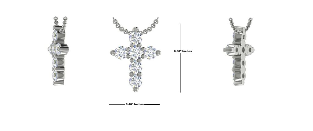 14KWG Cross Pendant – Shared Prong Set – 6 Round Lab Created Diamonds = .42 CTS F VS – 18″ Chain- 2.7 29 MM.