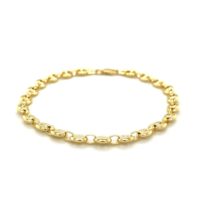 14k Two Tone Gold Anklet with Diamond Cut Heart Style Stations