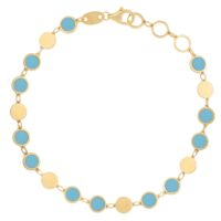 14K Yellow Gold Turquoise Rectangle Links Bracelet (3.50 mm)