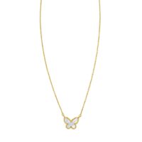 14k Yellow Gold High Polish Butterfly Peral Paste Necklace