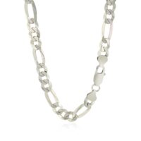Rhodium Plated 8.8mm Sterling Silver Figaro Style Chain (8.80 mm)