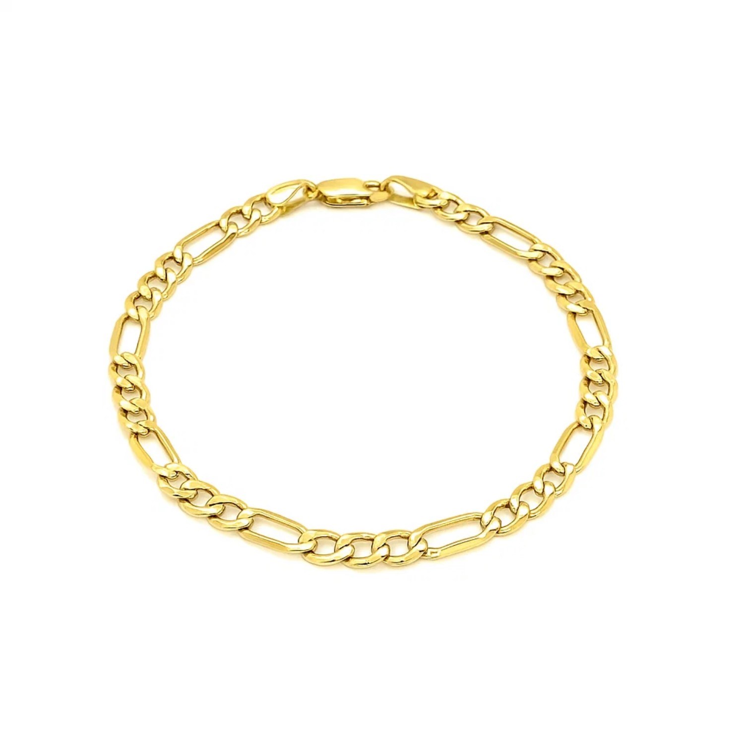 This Lite Figaro bracelet comes in 10k yellow gold and has a width of 4.6 millimeters. Secured with a lobster clasp.