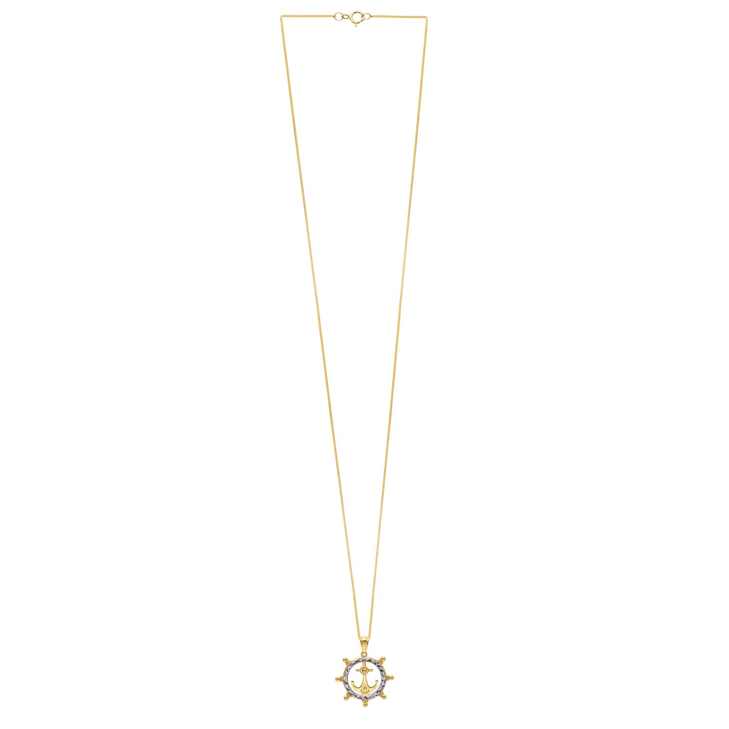 Symbolizing strength, stability, and guidance, this 10k two-tone gold pendant showcases an anchor resting within a ship’s wheel. Representing the steadfastness of an anchor and the navigation provided by a wheel, it serves as a meaningful emblem of resilience and purpose, carrying a profound message of navigating life’s journeys.