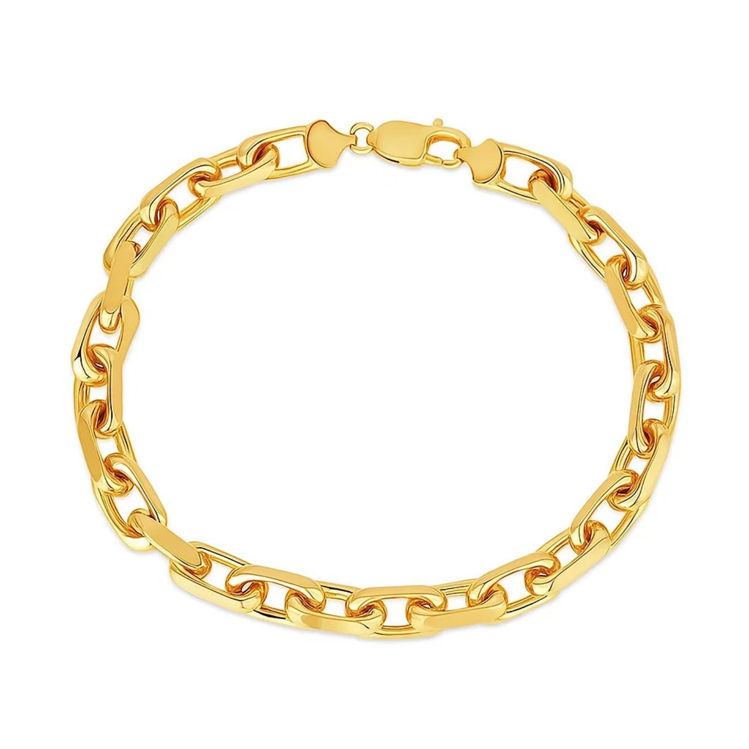 This french cable chain bracelet comes in 14k yellow gold and has a width of 6.1 millimeters. Secured with a lobster clasp.