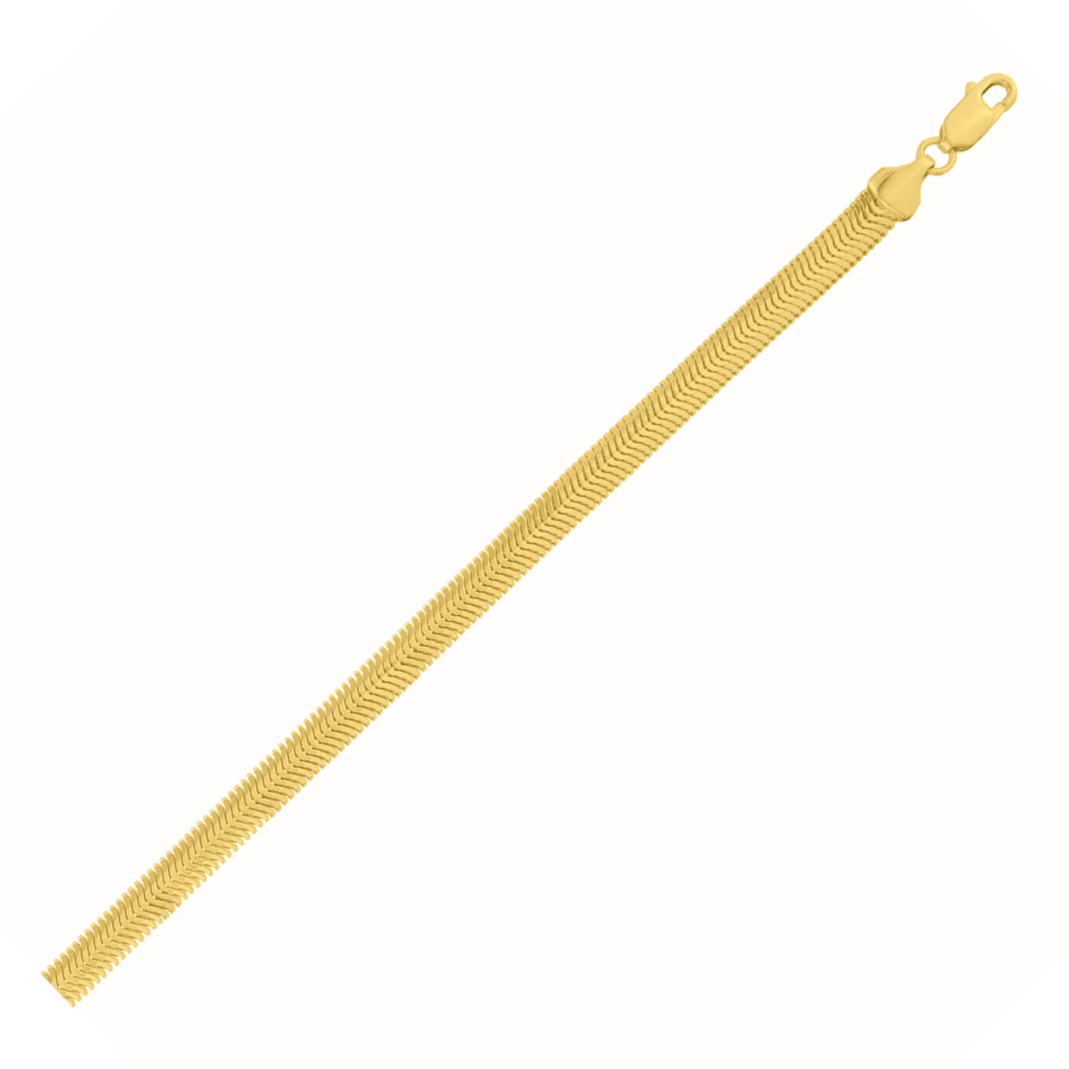 Crafted in 14K yellow gold, this oval snake chain bracelet features a 5.30 mm width with a smooth, rounded surface that offers a sleek and elegant appearance. Its flexible structure ensures comfortable wear. Finished with a secure lobster clasp and available in lengths measuring 7 inches.