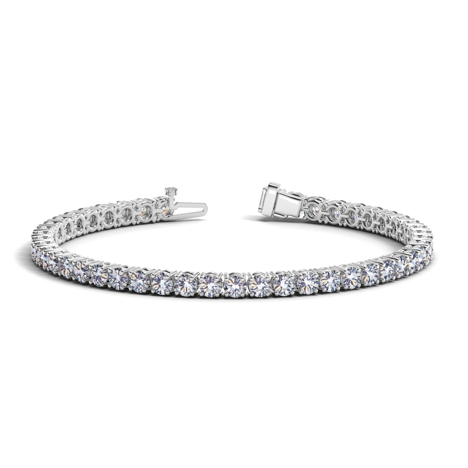 Classic four prong 8 carat total weight diamond tennis bracelet showcasing perfectly matched brilliant round cut lab grown diamonds set in 14k white gold.