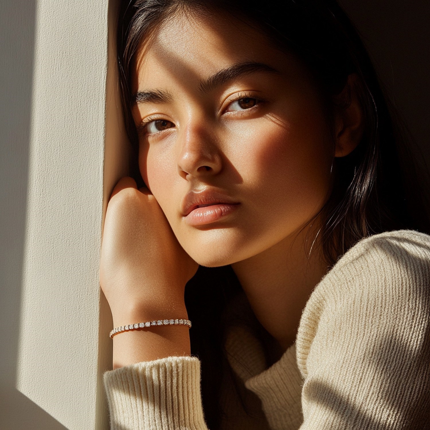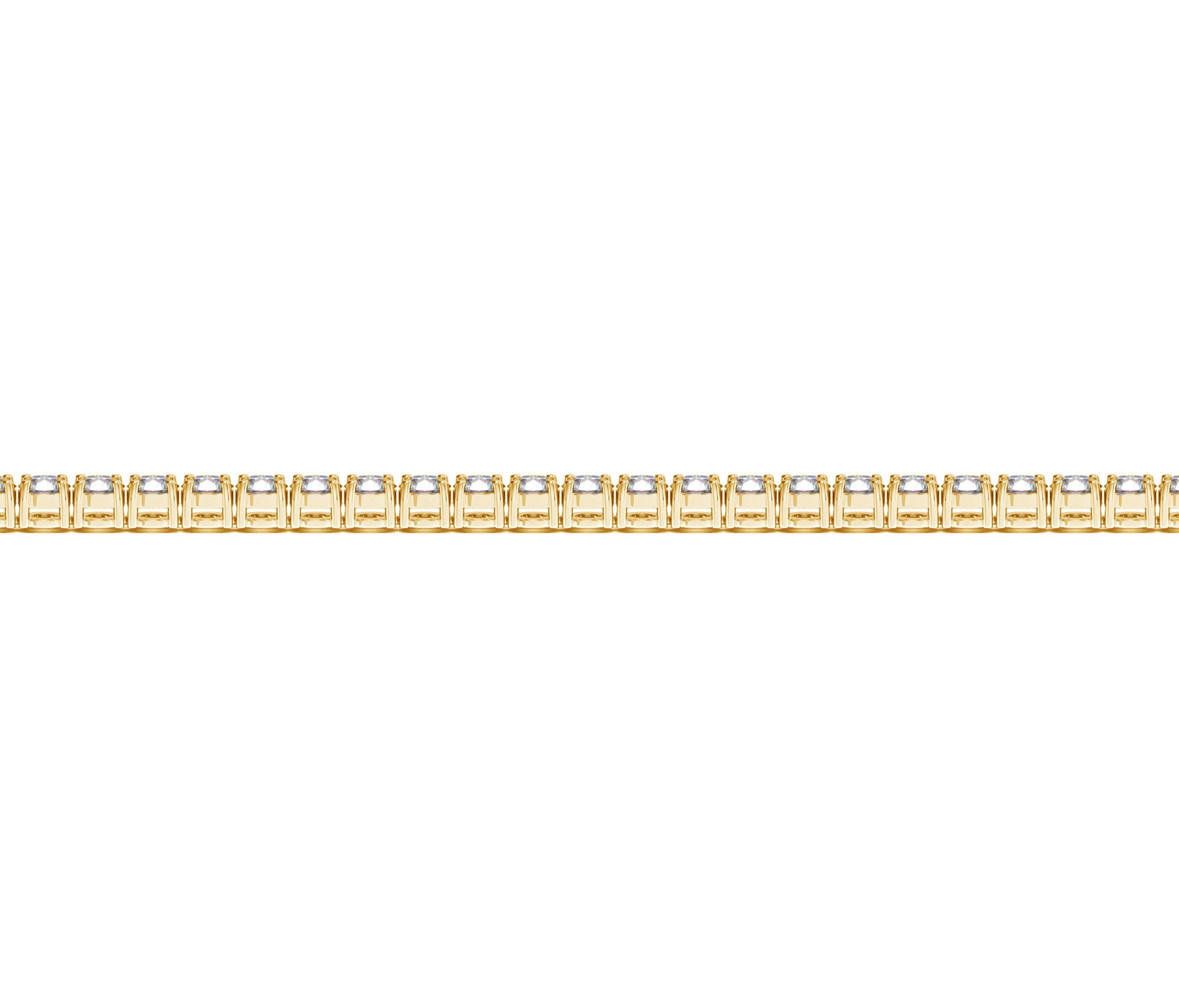 Classic four prong 3 carat total weight diamond tennis bracelet showcasing perfectly matched brilliant round cut lab grown diamonds set in 14k Yellow gold.