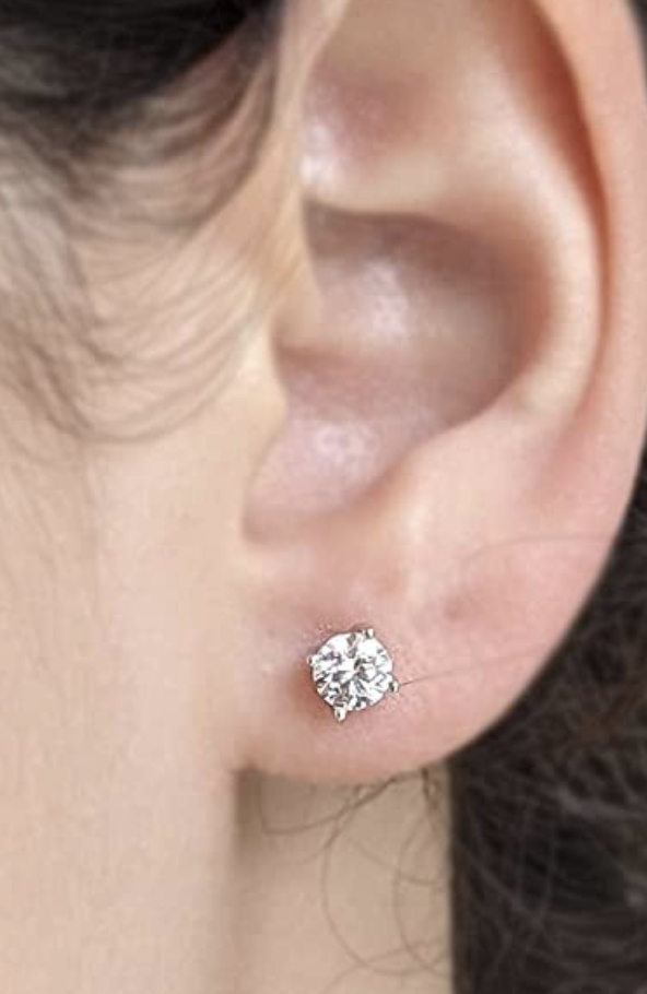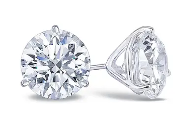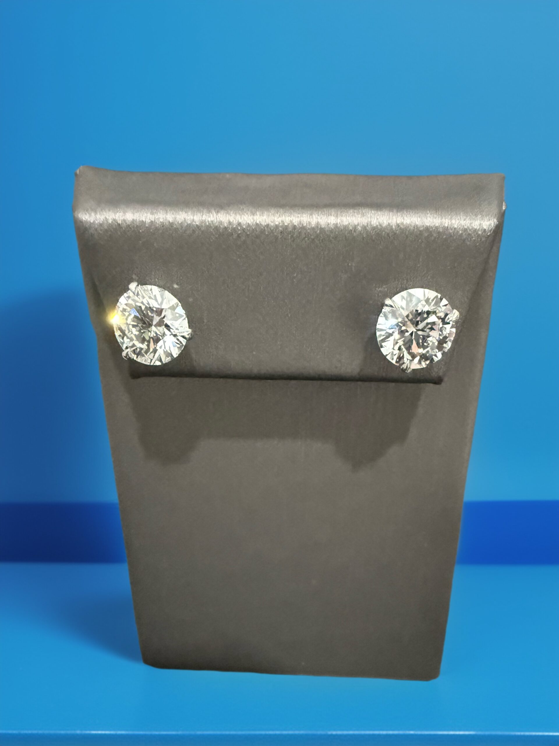 14 karat white gold lab grown diamond stud earrings featuring 2 round diamonds weighing 6.02 carats with E