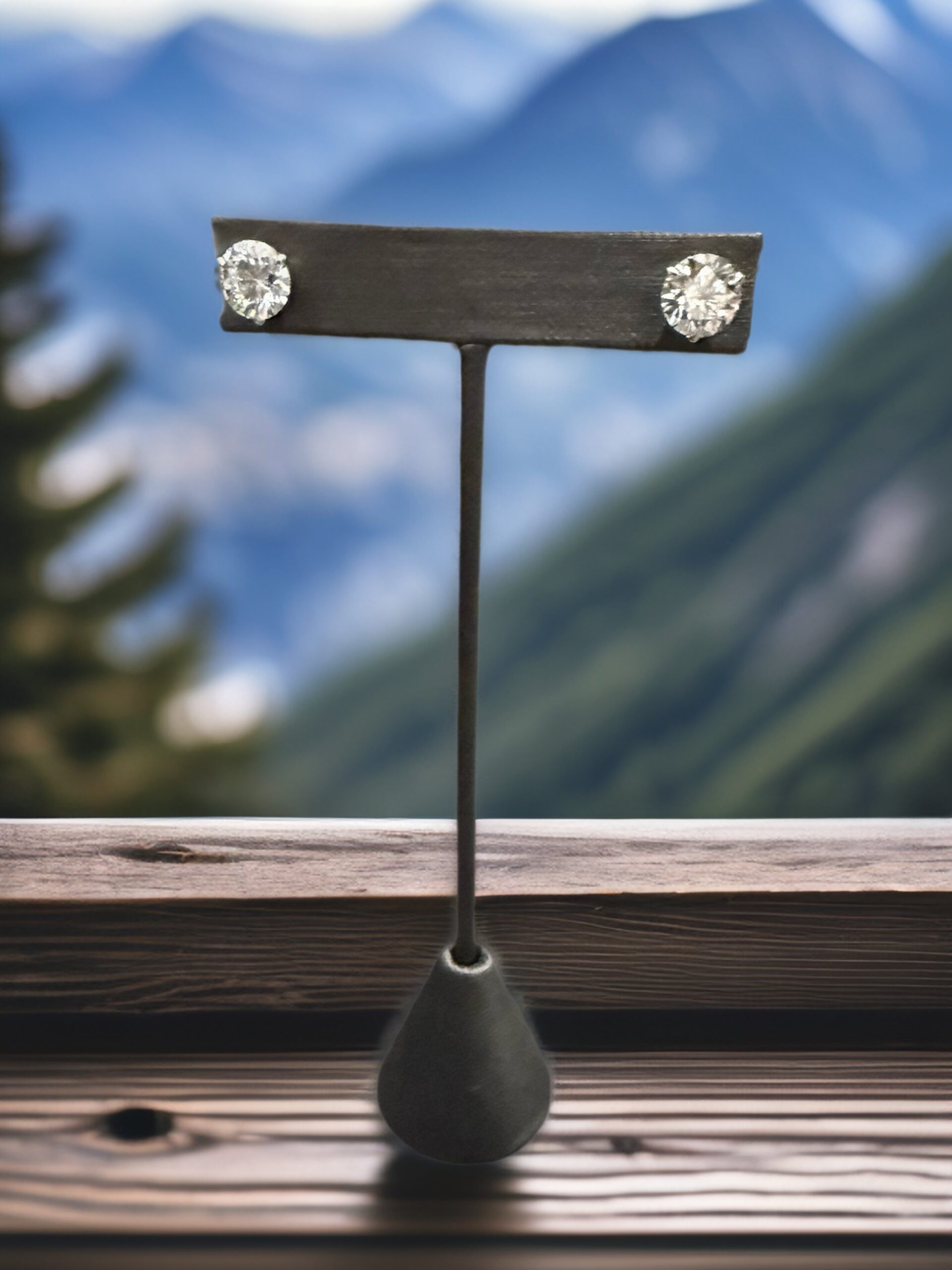 14KWG Lab Grown Diamond stud earrings featuring 2 round diamonds weighing 6.02 cts with E color and VS1 clarity. The earrings are martini style with 2 IGI certified diamonds. The earrings have medium posts and backs.