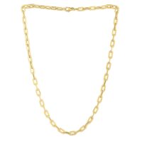 This stunning and bold 14k yellow gold paperclip chain features one focal link covered with luminous diamonds. Necklace is 17 inches long. Total weight of diamonds is .31ct.