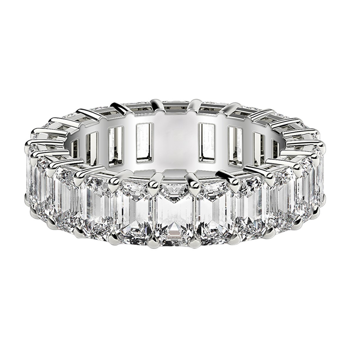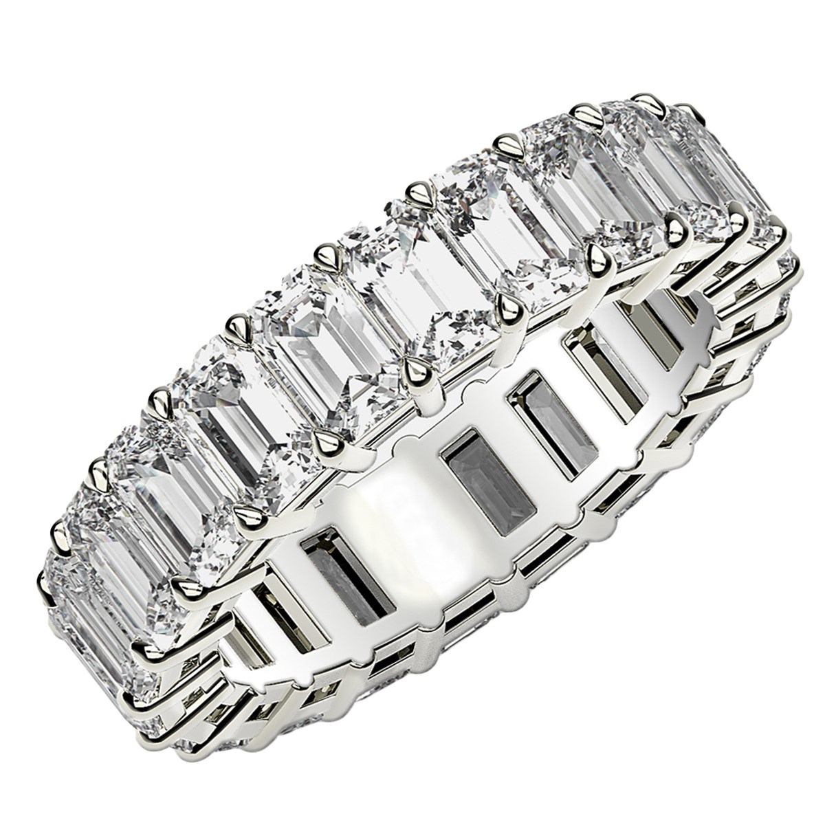 This dramatic eternity band features the traditional shine of 14k white gold, and the unparalleled sophistication of beautiful prong-set emerald cut lab grown diamonds. The light it radiates is as eternal and bright as the emotion it symbolizes.