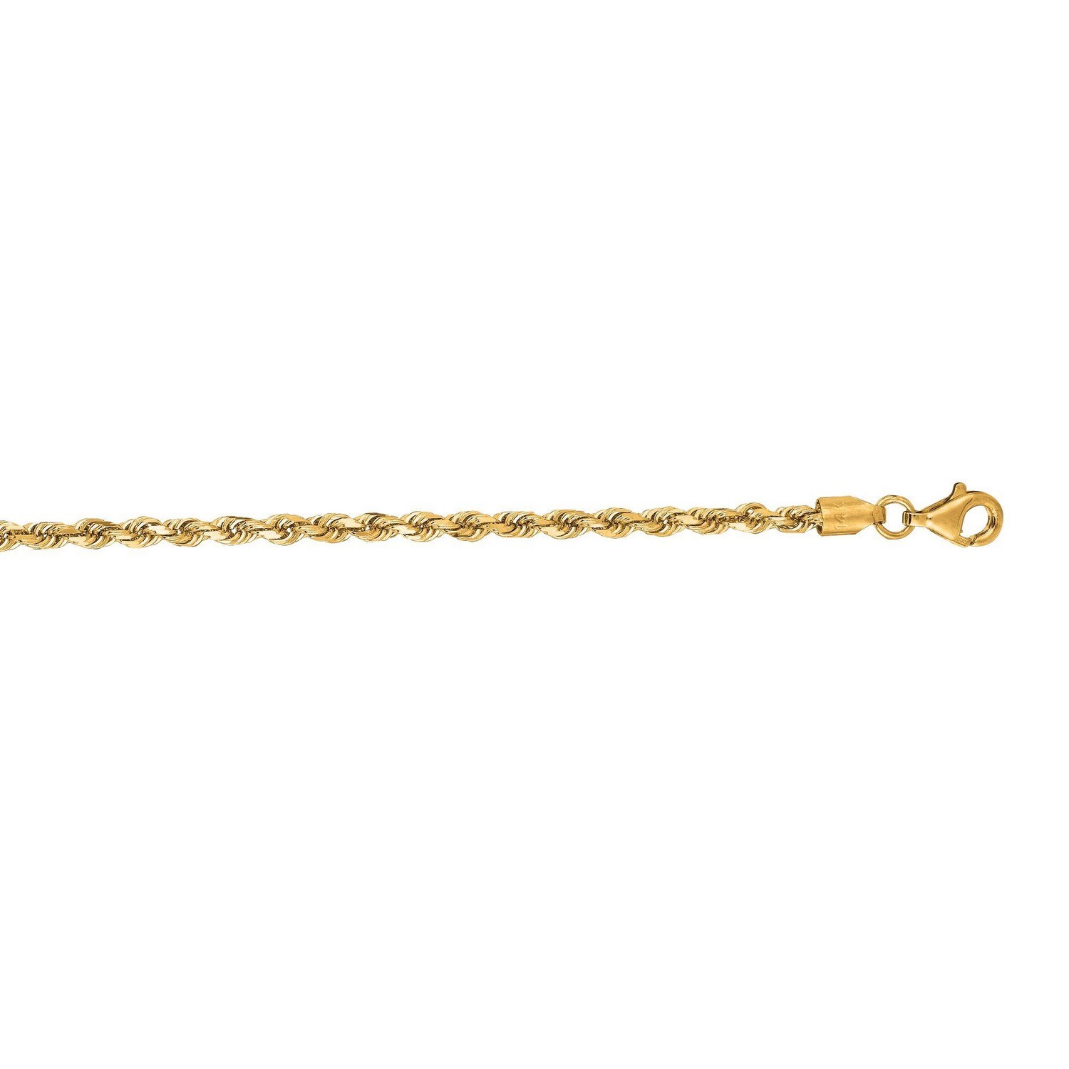 This solid diamond cut rope bracelet comes in 10k yellow gold and has a width of 2.75 millimeters.