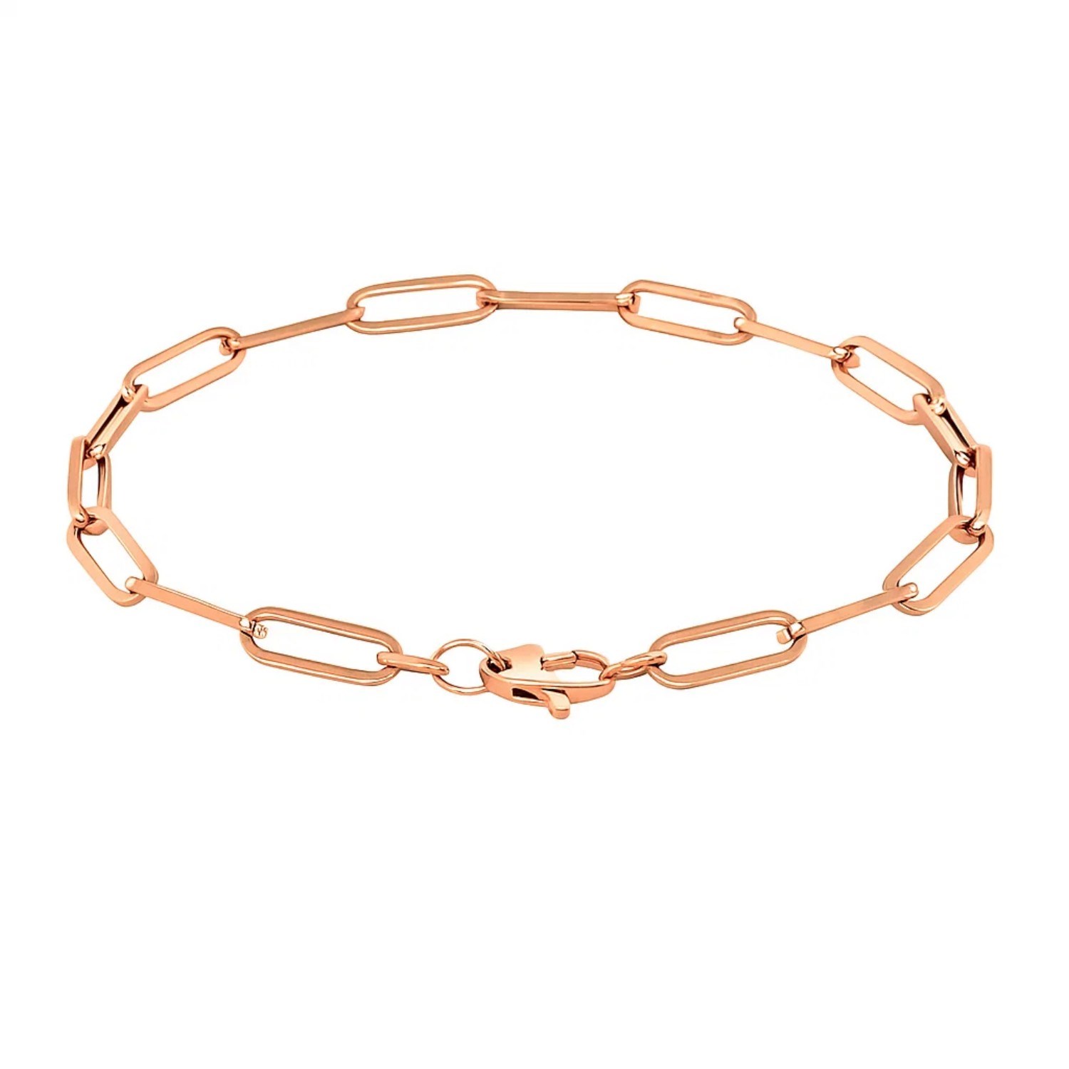 This eye-catching bracelet features beautifully polished links of unique paperclip chain that bring out the timeless beauty of 14K rose gold. Bracelet is 7 1/2 inches long, 6.1mm wide, and closes with a lobster clasp.