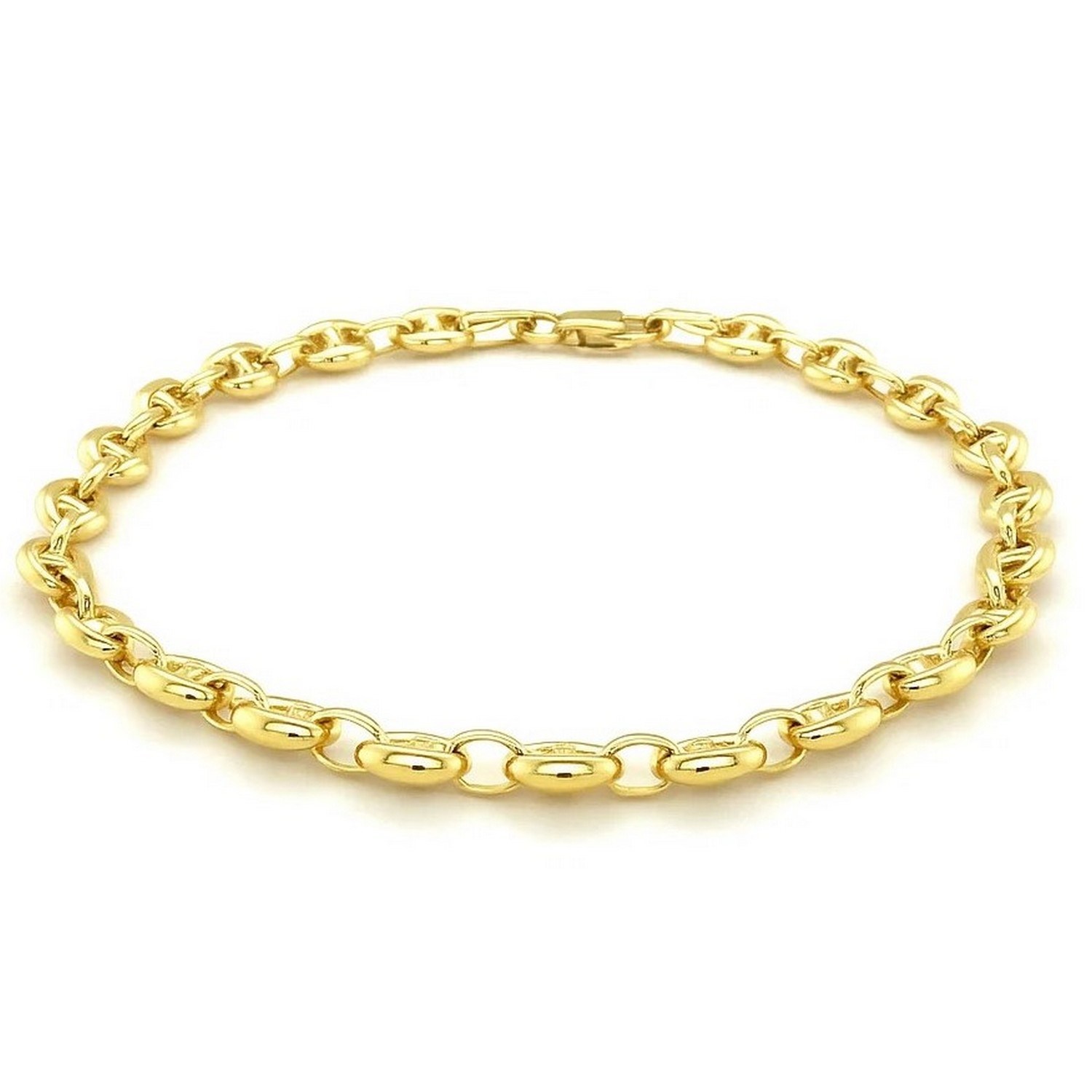This puffed mariner link bracelet comes in 14k yellow gold and has a width of 4.7 millimeters. Secured with a lobster clasp.