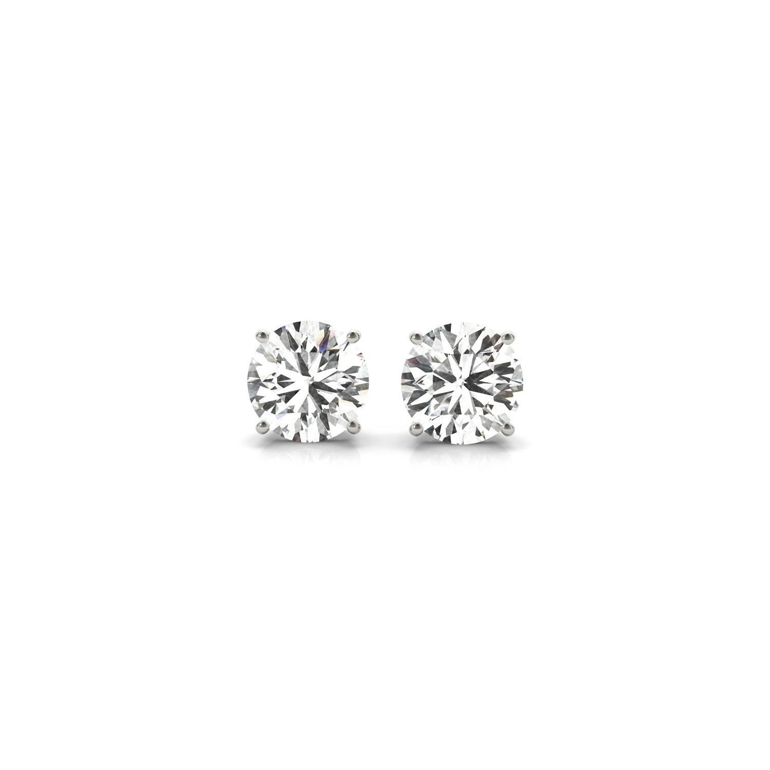 Four prong 14k white gold stud earrings feature two perfectly matched IGI certified lab grown round cut diamonds with a total weight of 1 1/2 carat. Secured with push backs.