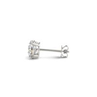 Four prong 14k yellow gold stud earrings feature two perfectly matched IGI certified lab grown round cut diamonds with a total weight of 1 1/2 carat. Secured with push backs.
