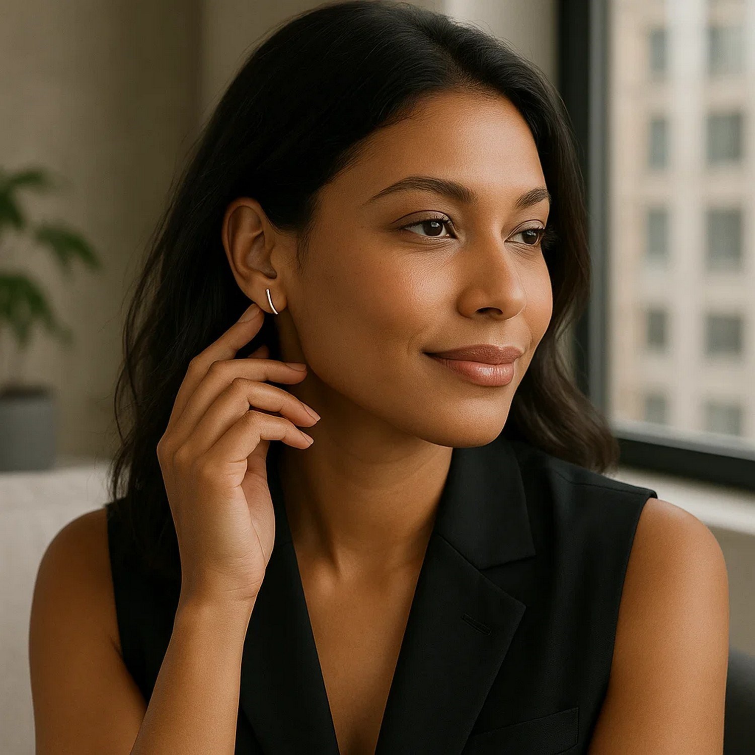 The timeless elegance of a polished, slightly curved bar meets the modern “ear climber” trend in these dramatic 14k white gold post earrings. Post earrings are held in place by pushback clasps.