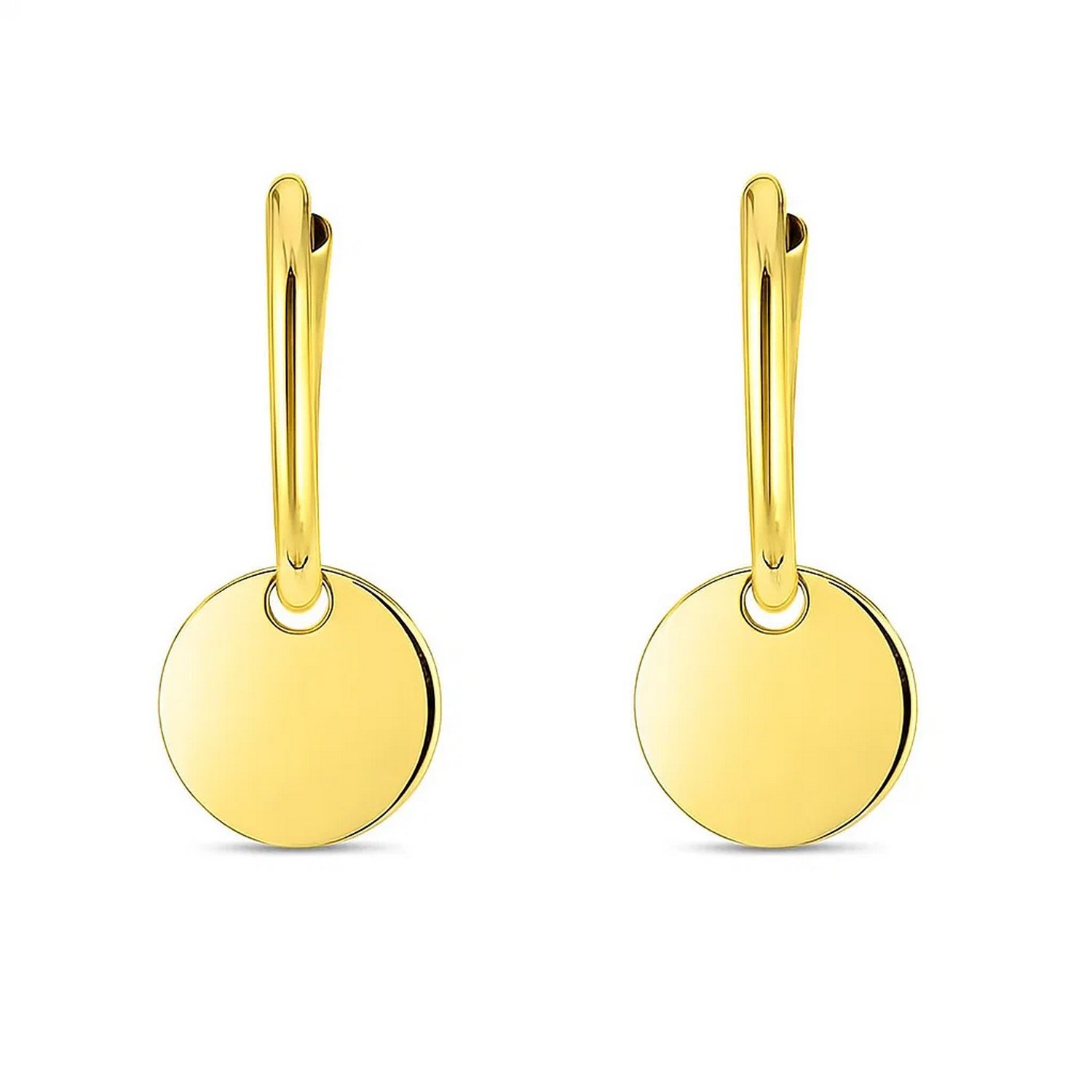 14k Yellow Gold Huggie Style Hoop Earrings with Circle Drops