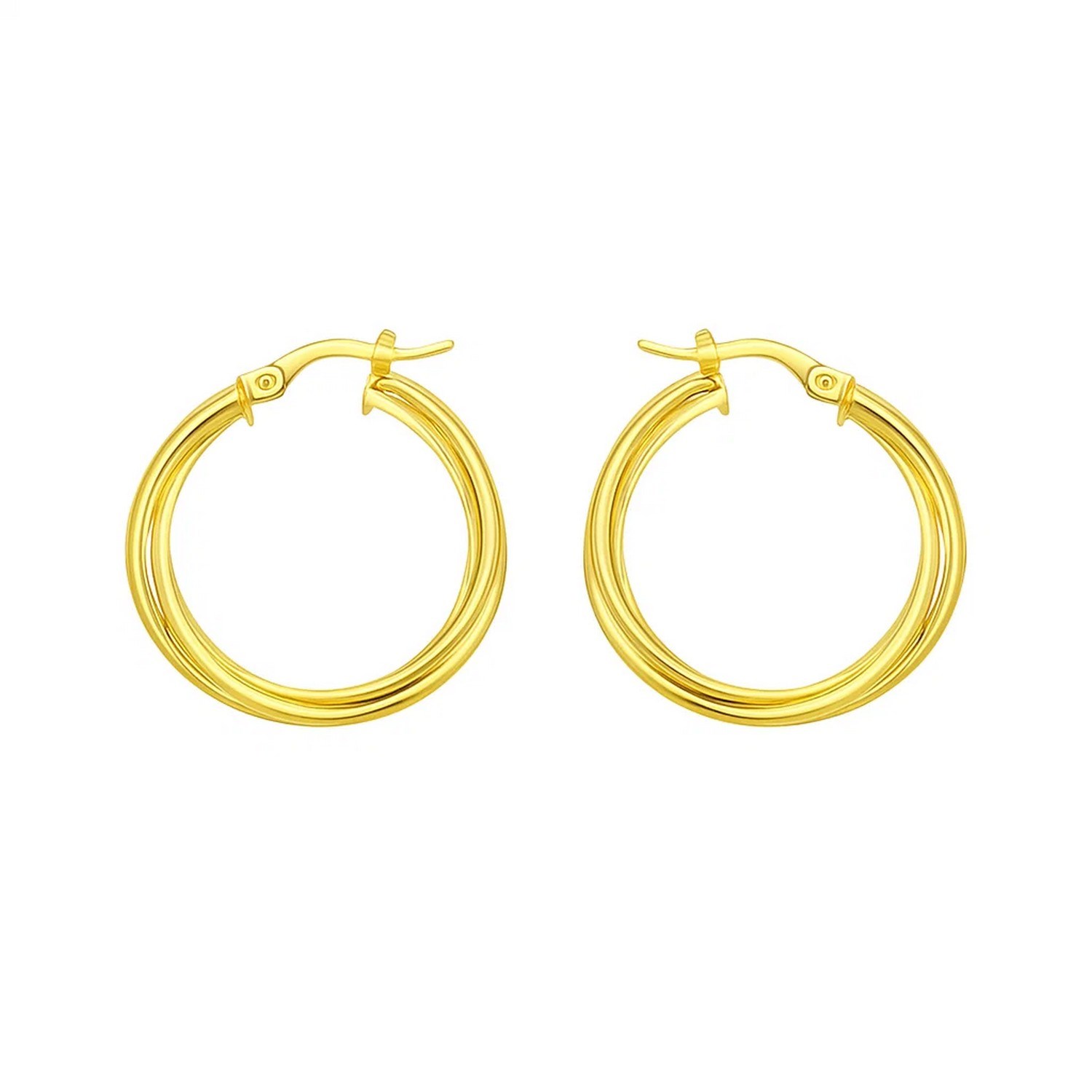 Elevate your elegance with these 14K yellow gold interlocking medium trinity hoop earrings. Featuring a polished finish and a secure hinged clasp, these hoops offer a sophisticated twist on a classic design. Perfect for both everyday wear and special occasions, they add a touch of timeless beauty to any ensemble.