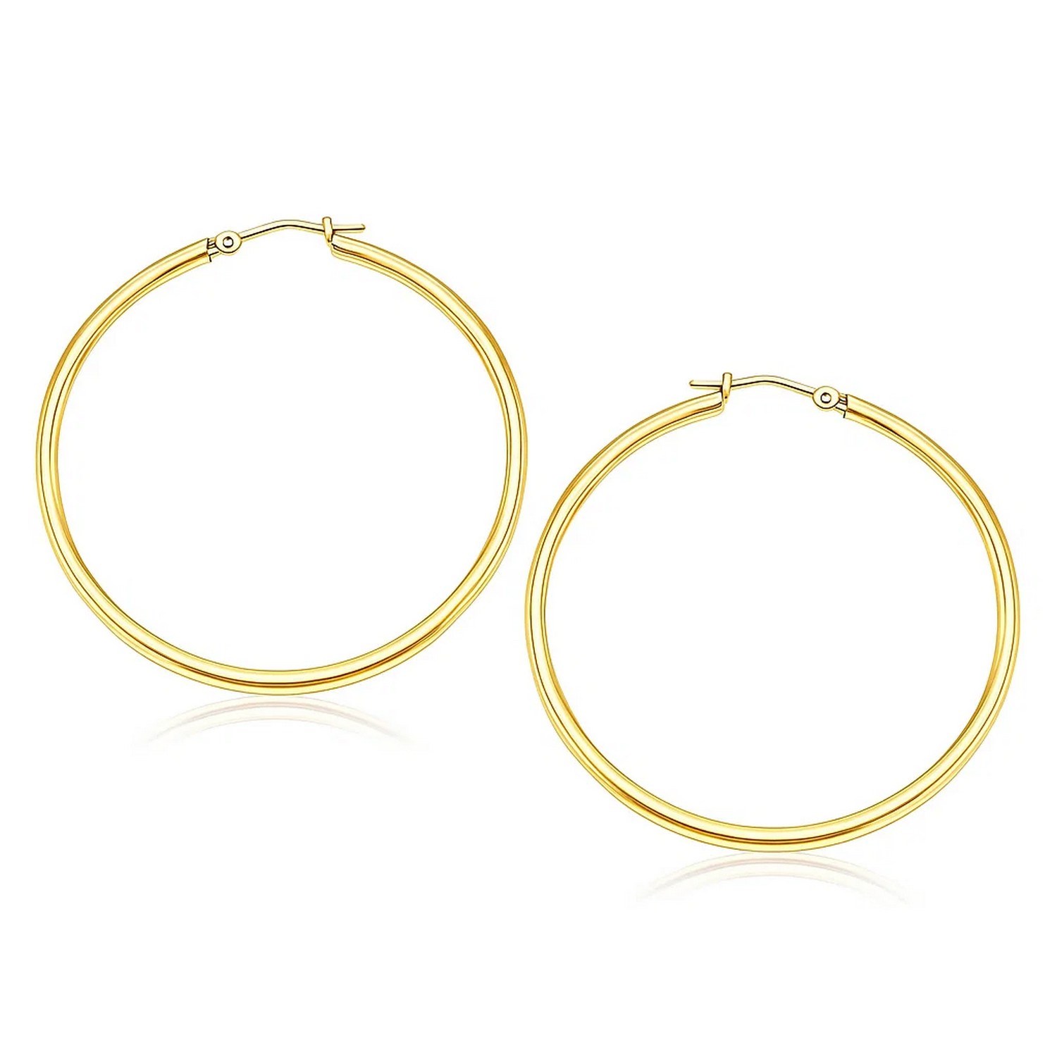 These timeless hoop earrings are crafted in 14k yellow gold and measure 40 millimeters in diameter, featuring a snap lock backing.