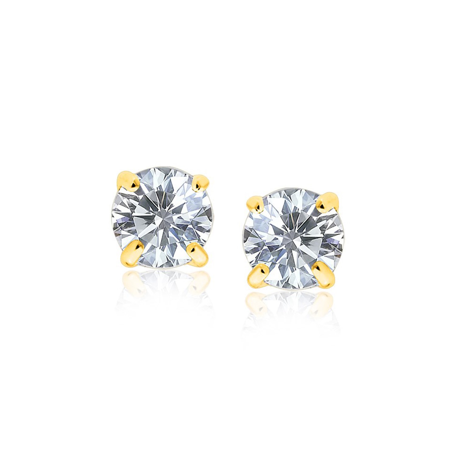 This is a pair of classic stud earrings. Cubic zirconia accents measuring 7 millimeters highlight the polished 14k yellow gold sections of these beauties.