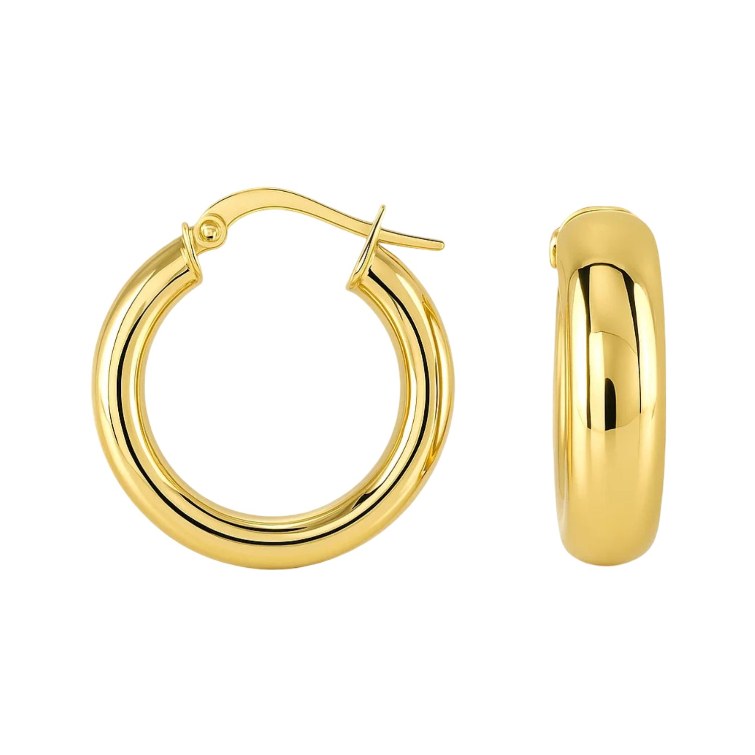 The full silhouette and bright polish make these classic hoop earrings a jewelry wardrobe favorite. Securely held with snap locks, these stylish earrings are perfect for casual wear. Tasteful with a bold profile, the mirror finish adds to their appeal.