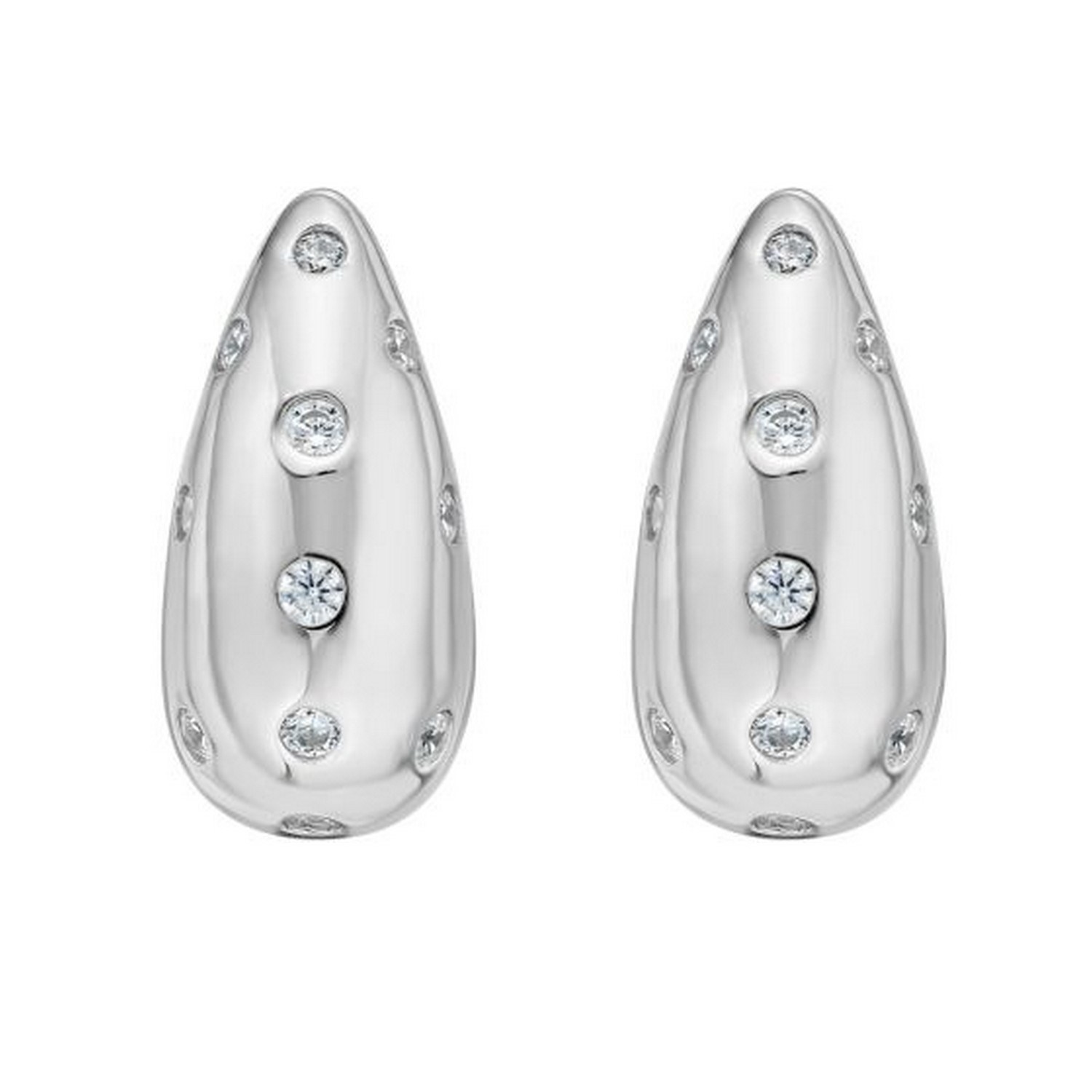 Elegant sterling silver puffed raindrop with cubic zirconia stones earrings featuring a smooth, rounded design accented with sparkling CZ details. The puffed raindrop shape adds graceful dimension and brilliance, creating a timeless look of refined sophistication.