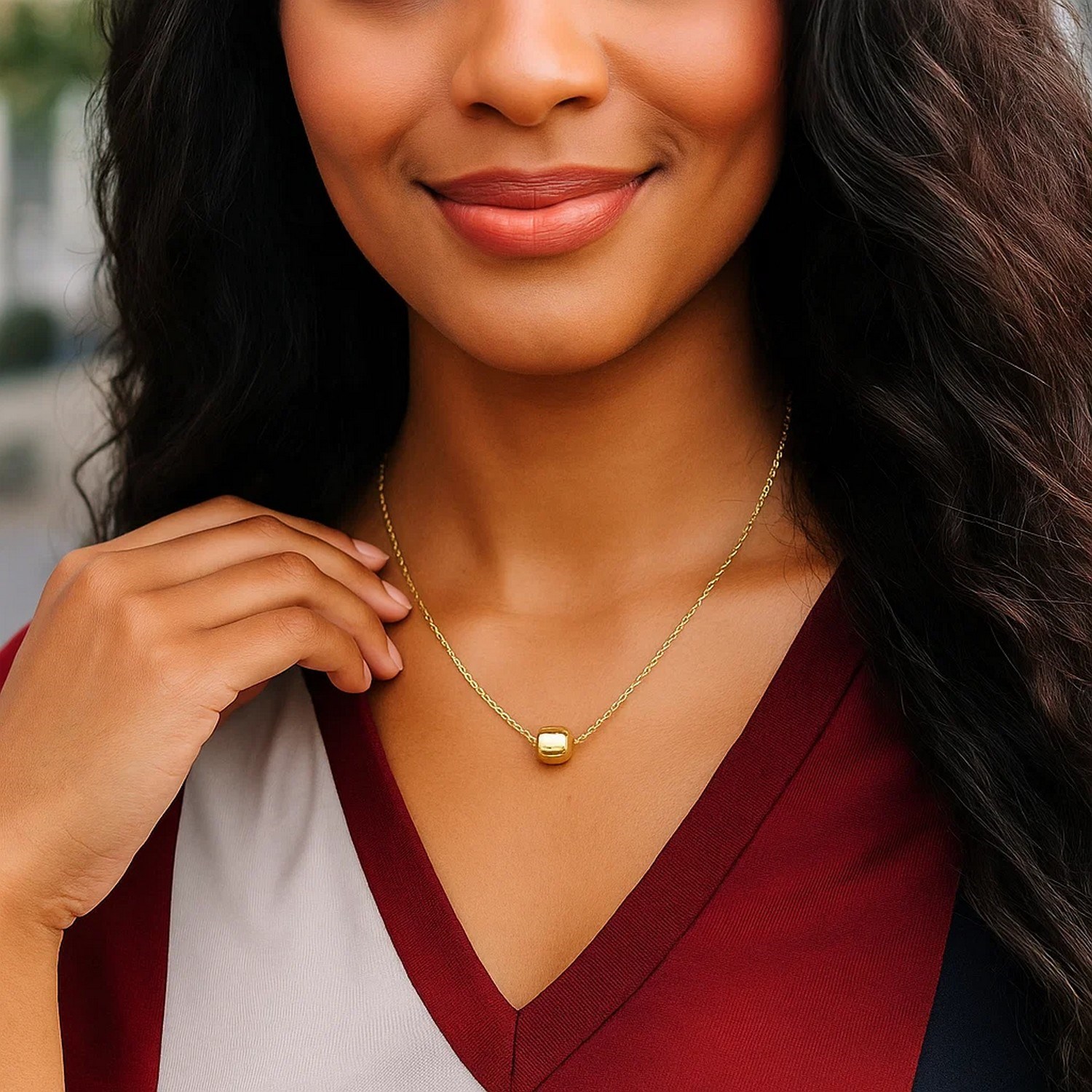 A delightful barrel bead in shiny finish showcases the charming style of this chain necklace. Crafted in 14k yellow gold, this comes in size 18 inches and is secured with a lobster lock.