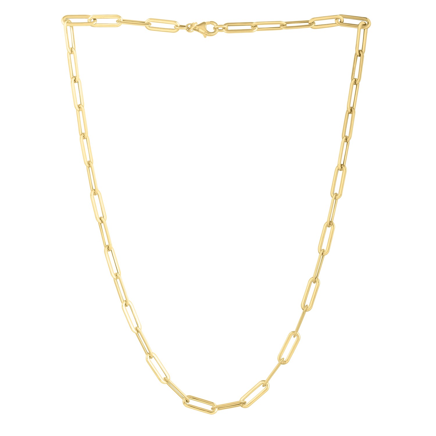Designed for both depth and dimension, this 14k yellow gold domed paperclip necklace features sleek, elongated links with a convex shape that enhances light reflection and creates a sculpted effect. The domed design adds a refined touch, giving the classic paperclip style a more substantial, elevated look. Finished with a pear-shaped lobster clasp for secure wear, this necklace makes a subtle yet striking statement—perfect for layering or wearing solo with effortless sophistication.