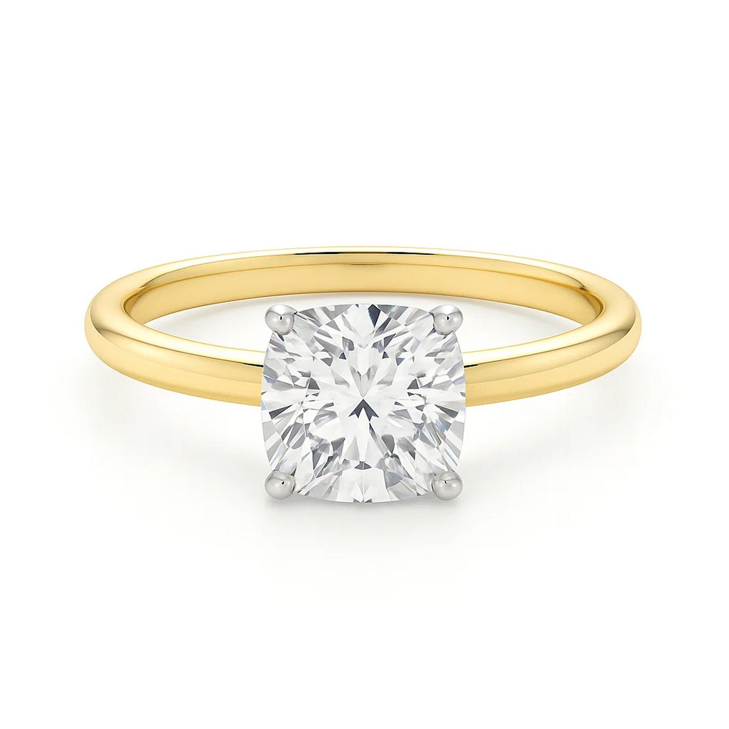Celebrate life’s most meaningful moments with this breathtaking 3 carat cushion-cut lab-grown diamond solitaire ring—a flawless blend of timeless elegance and contemporary design. IGI certified with G color and VS1 clarity, the diamond radiates exceptional brilliance and trusted quality. Set in a classic four-prong 14K white gold head and paired with a polished 14K yellow gold band, the refined two-tone setting offers a striking contrast that’s both traditional and modern. Perfect for a proposal, anniversary, or unforgettable milestone, this masterfully crafted ring is a lasting symbol of love, designed to be cherished for a lifetime.