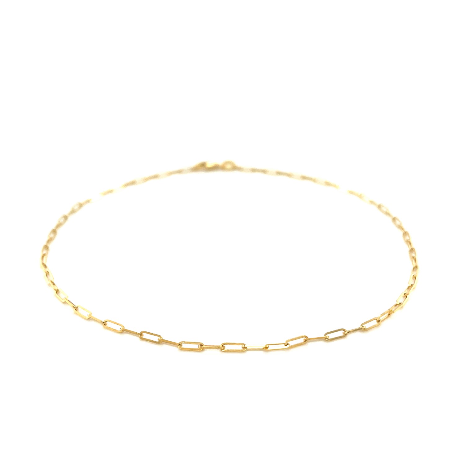 The delicate sophistication of 14K yellow gold meets the modern simplicity of paperclip anklet. Anklet has 1.5mm wide links and closes with a lobster clasp.