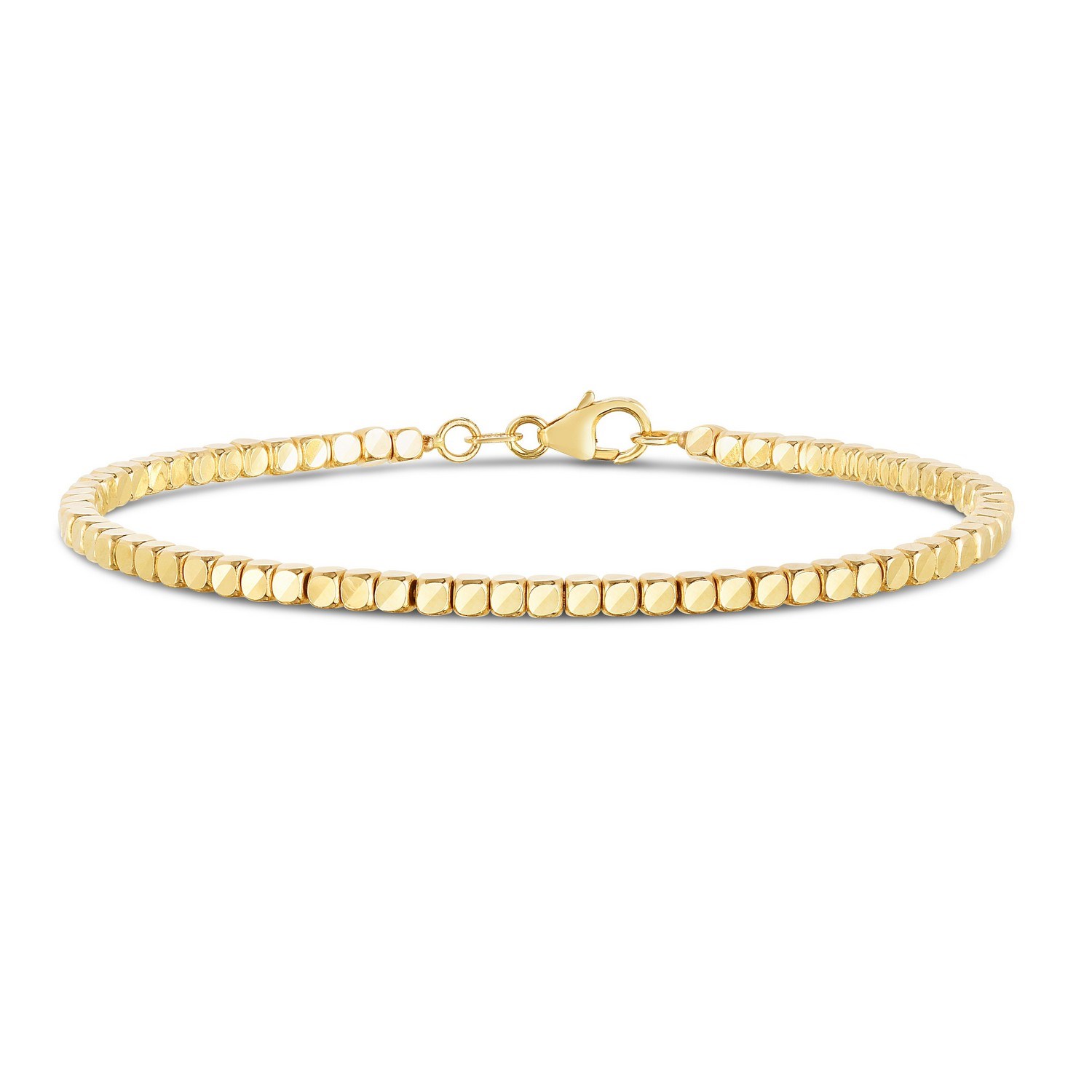 This Bead Cuff bangle is a unique addition to complete that certain style. Great everyday piece crafted in 14k yellow gold with a high polish finish & a lobster clasp closure. Available in a 6 3/4 inches length.