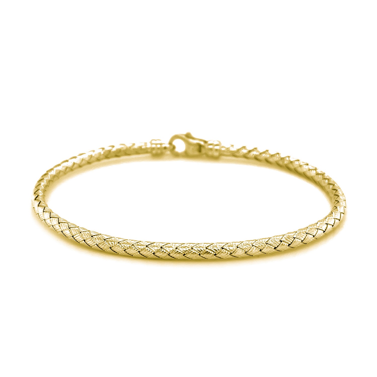 14k yellow gold, this bangle features a weave design and measures 3.0 millimeters in width. Secured with a lobster clasp.