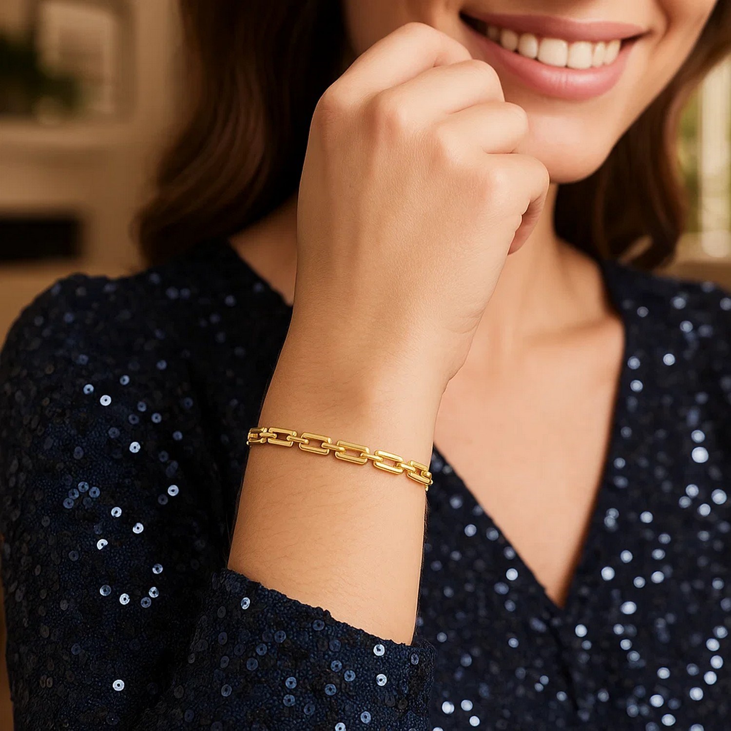 Sophisticated and timeless, this 10K Yellow Gold Deco Link Bracelet features beautifully crafted geometric links inspired by classic Art Deco design. Its sleek, polished finish catches the light with every movement, creating a refined look that transitions effortlessly from everyday wear to special occasions. A standout piece that adds vintage charm and modern elegance to any jewelry collection.