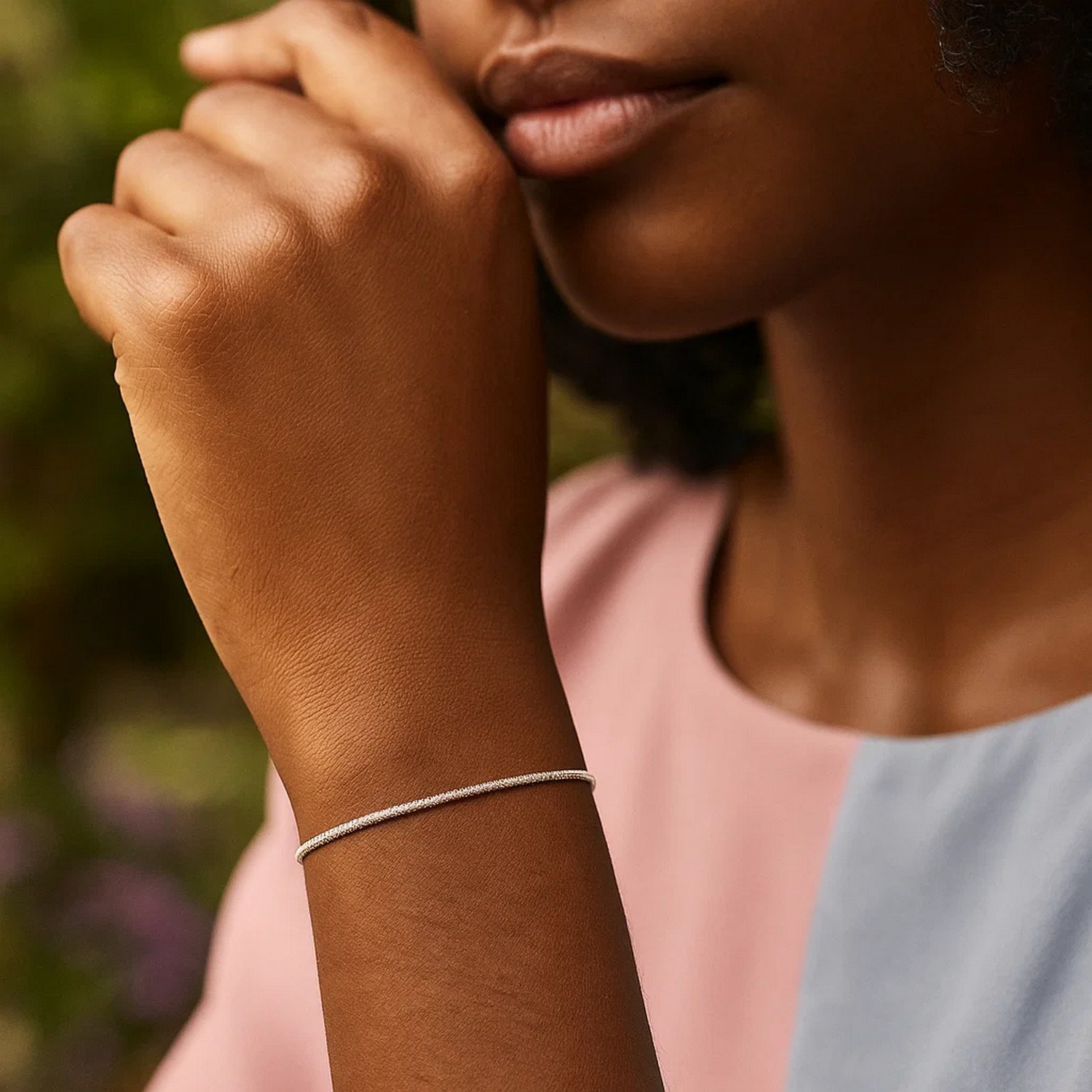 Crafted in sleek 14K white gold, this 1.70 mm diamond-cut sparkle spring bracelet features finely faceted links that catch the light with radiant brilliance. Its flexible, lightweight design offers effortless comfort and refined shine, making it a perfect piece for everyday elegance or layering with your favorite bracelets.
