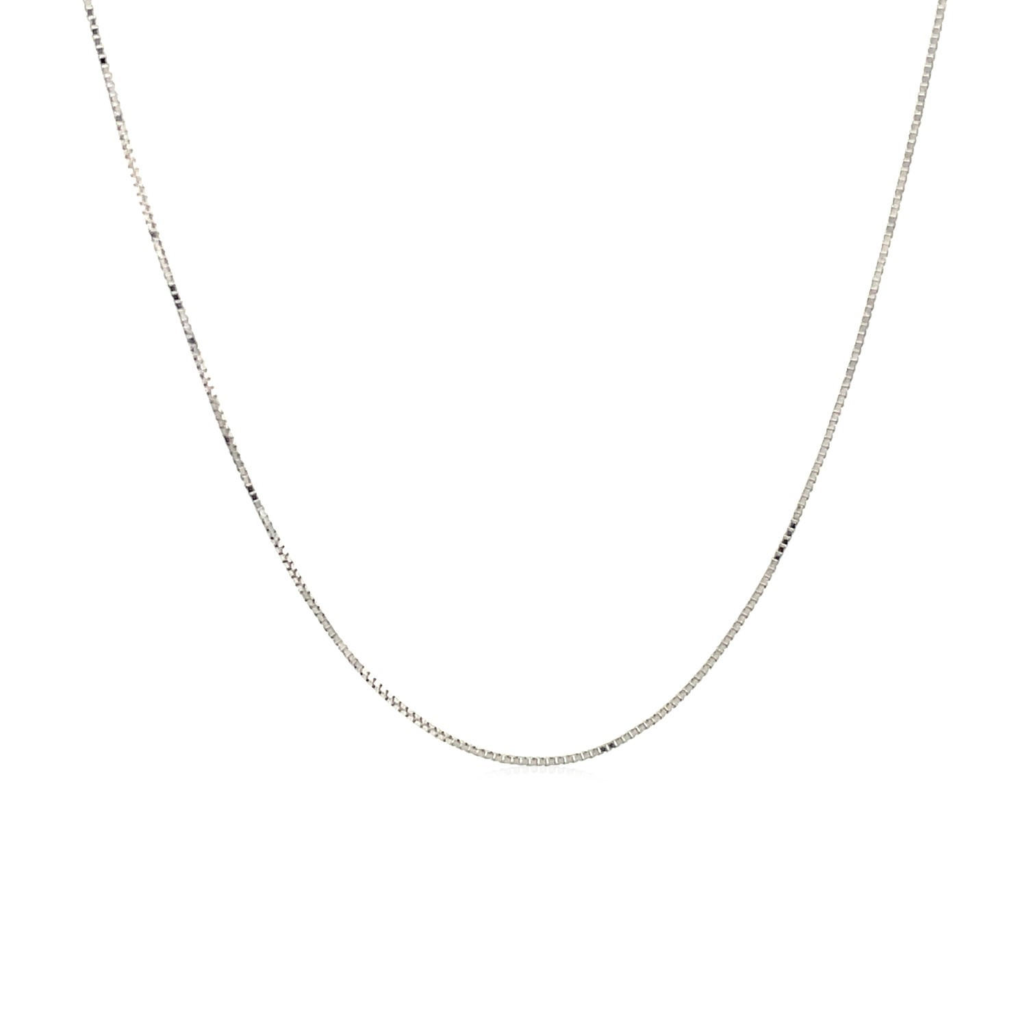 This classic box chain comes in 10k white gold and has a width of 0.45 millimeters.
