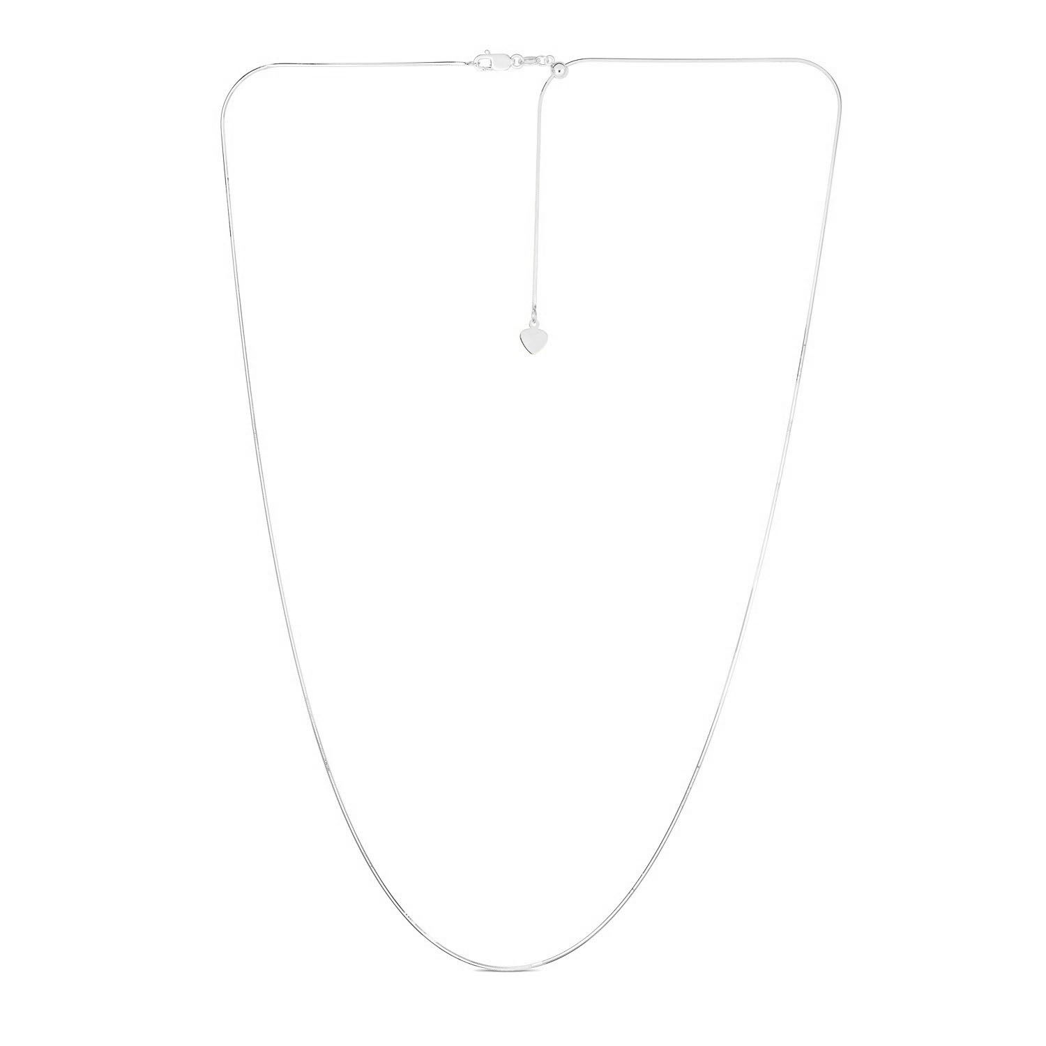 Crafted in 14k white gold, this adjustable snake chain measures a width of 0.80 millimeters and features a heart dangle accent. The chain is adjustable up to 22 inches and is fastened securely with a lobster clasp.