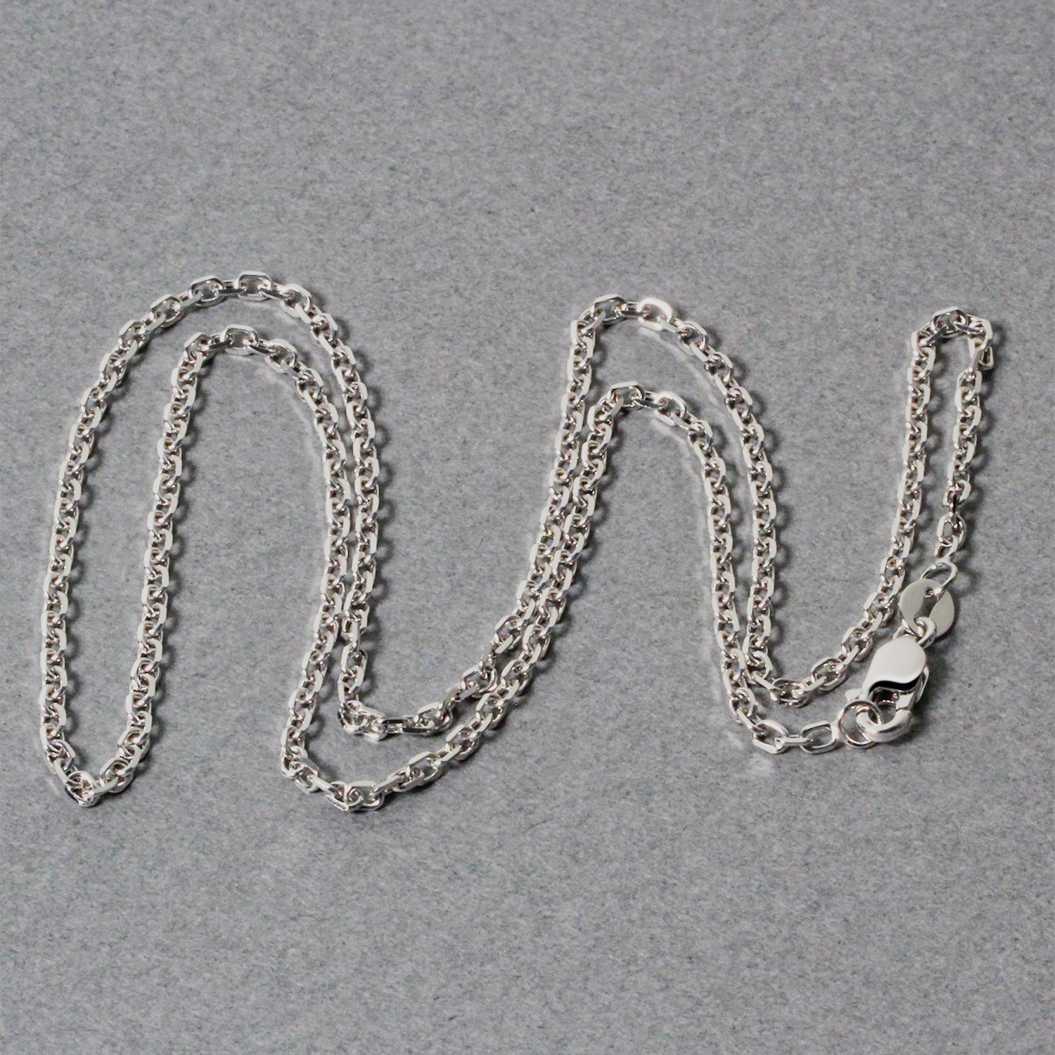 This diamond cut cable link chain comes in 14k white gold and has a width of 1.9 millimeters.