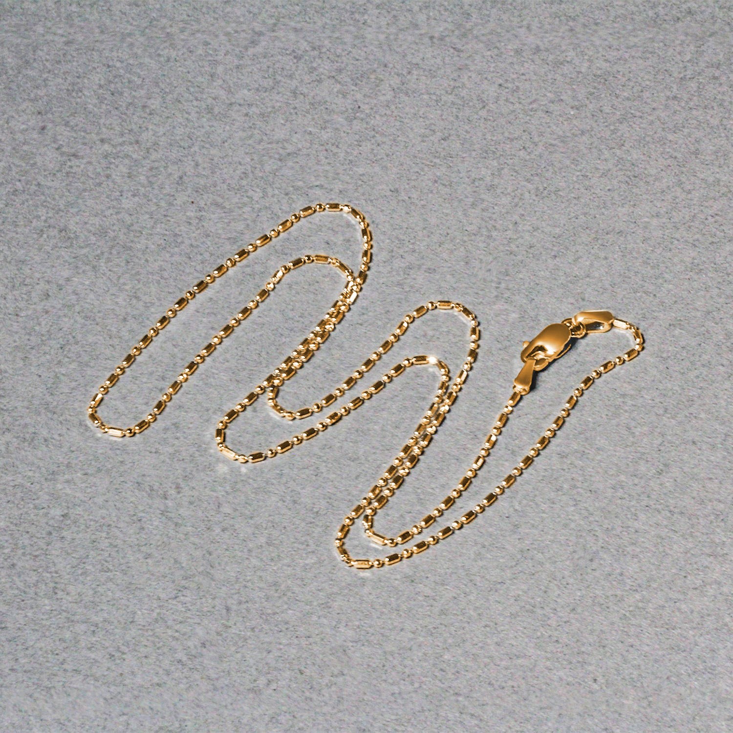 This diamond cut bead chain comes in 14k yellow gold and has a width of 0.90 millimeters.