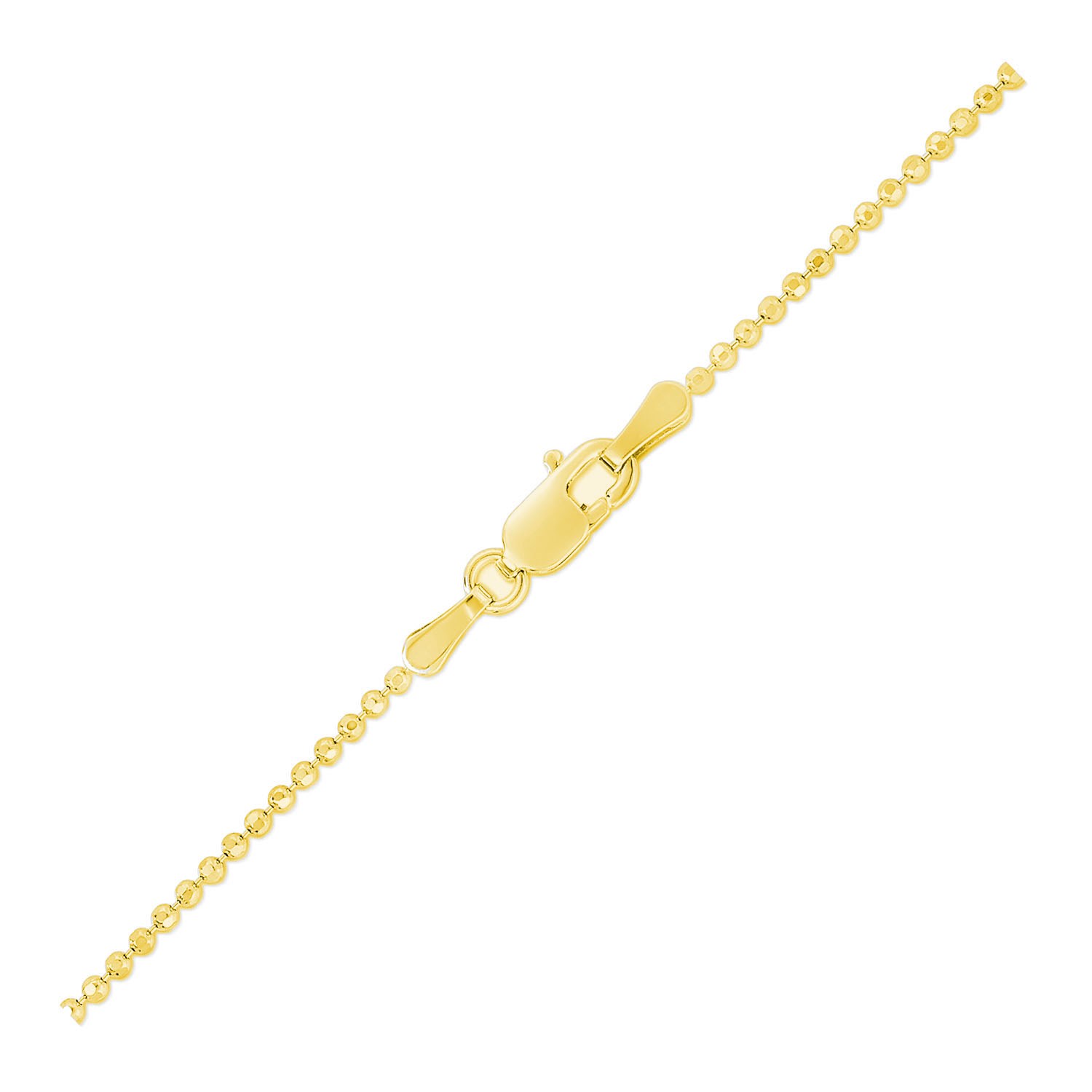 This diamond cut bead chain comes in 14k yellow gold and has a width of 1.10 millimeters.