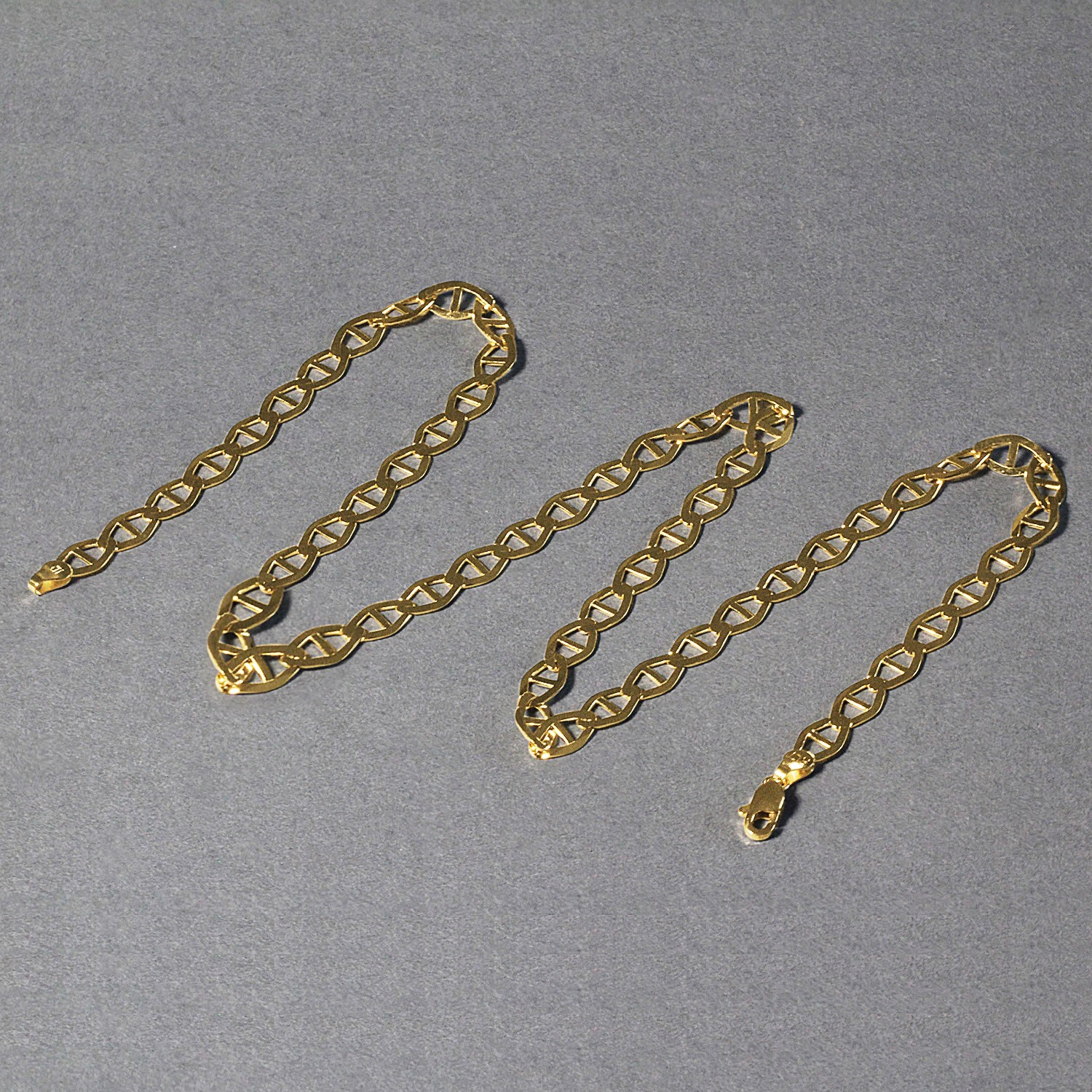 This mariner link chain comes in 14k yellow gold and has a width of 6.30 millimeters.