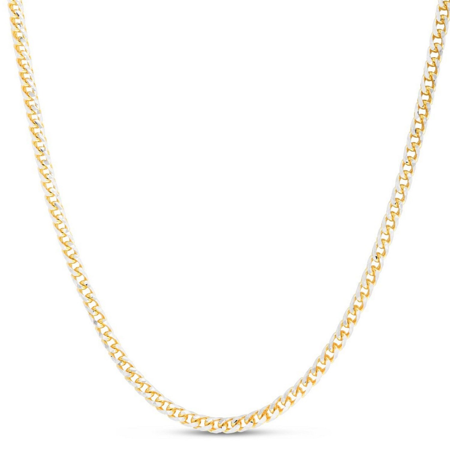 This round pave franco chain comes in 14k yellow gold and has a width of 4.00 millimeters.