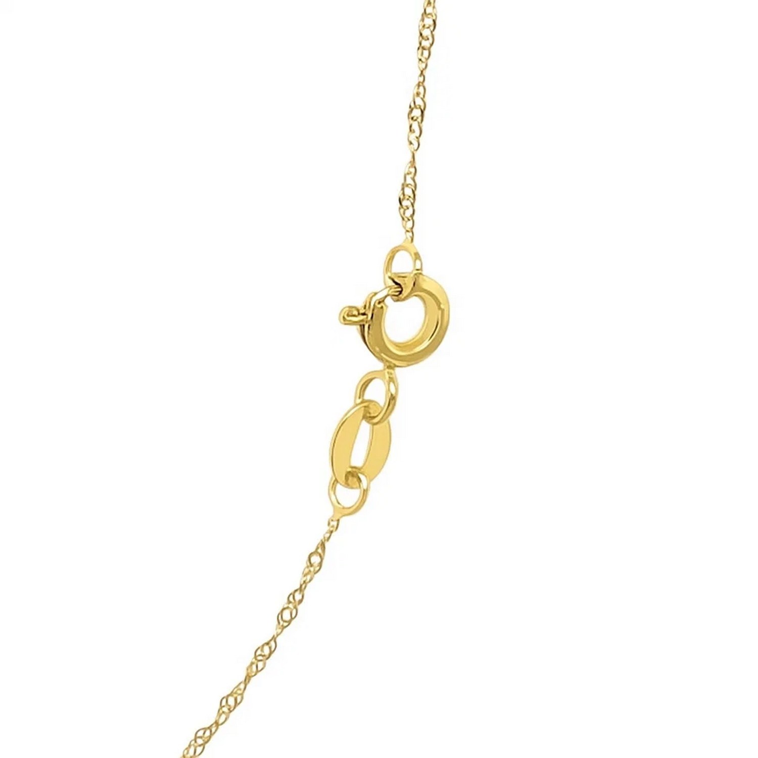 This Singapore chain comes in 14k yellow gold and has a width of 0.60 millimeters.