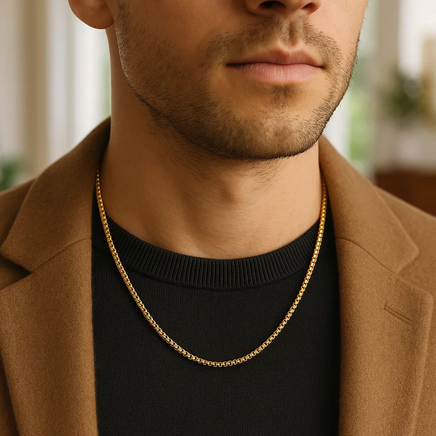 This round box chain comes in 14k yellow gold and has a width of 1.6 millimeters.