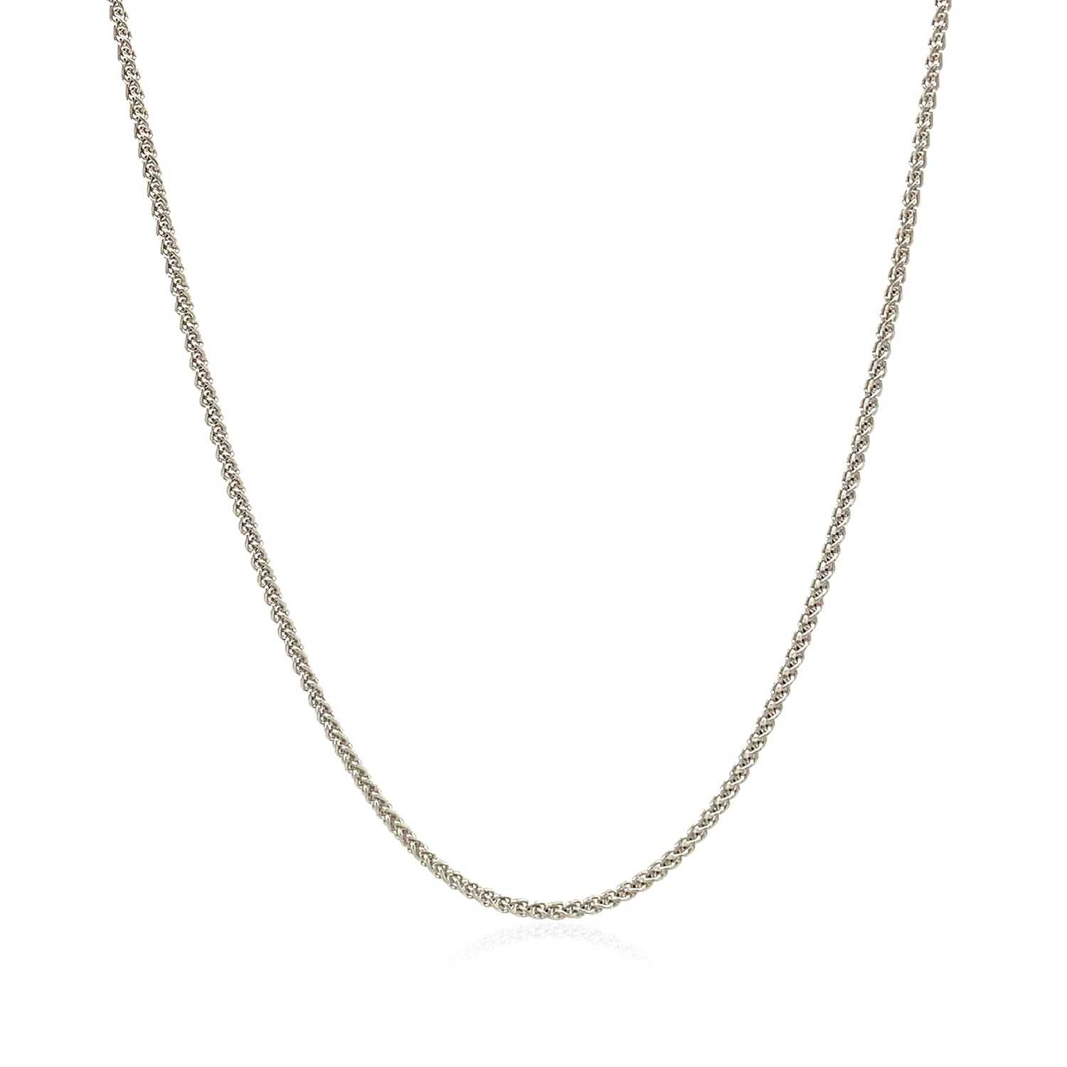 This round wheat chain comes in 18k white gold and has a width of 1.20 millimeters.
