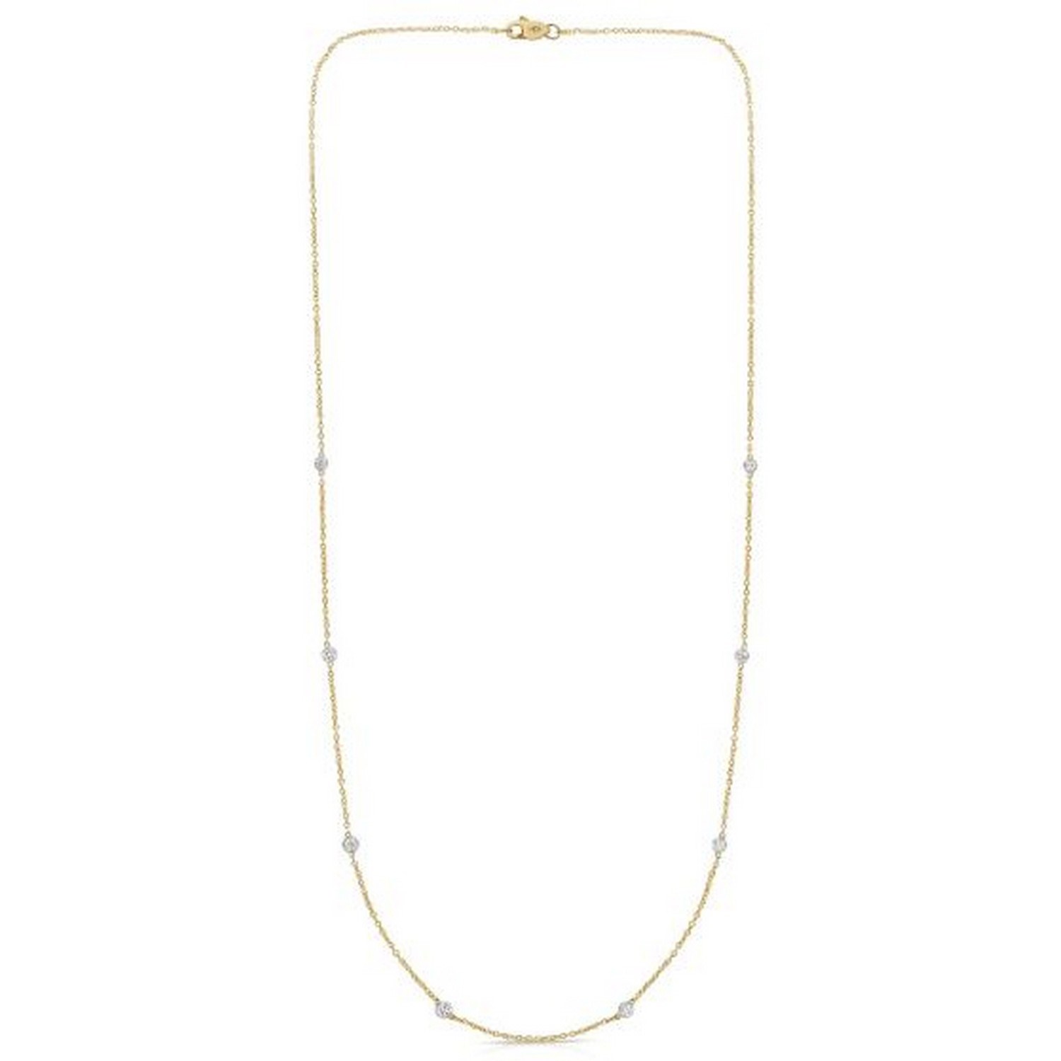 This 14K yellow gold Diamonds by the Yard necklace features bezel-set diamonds spaced along a delicate gold chain, creating a timeless, light-catching look. Elegant and versatile, it’s perfect for everyday wear, layering, or adding a touch of sparkle to any outfit.