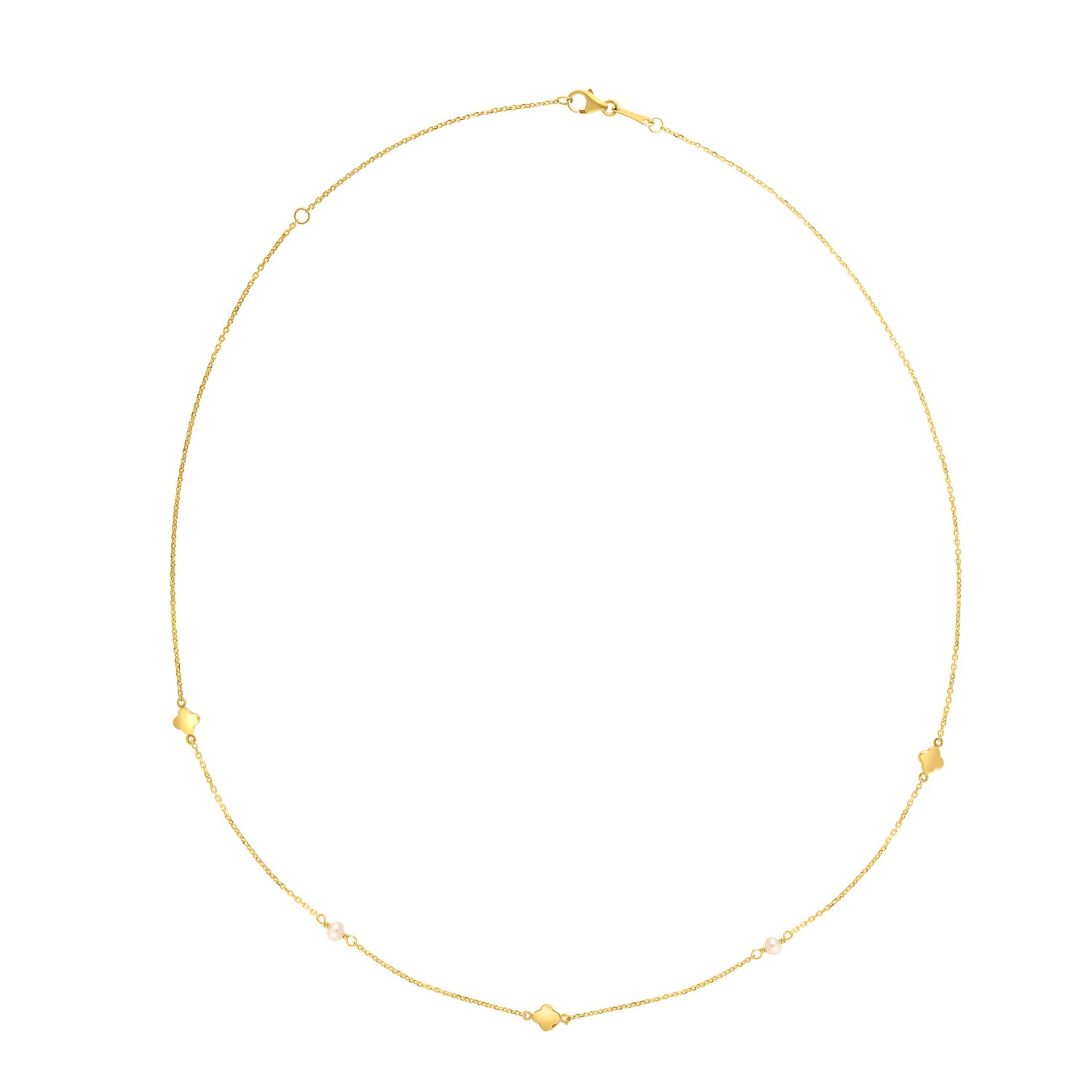 This Pearl Clover necklace is beautifully crafted in 14k yellow gold with a high polish finish and closes with a lobster clasp. A classic spin on one of the most popular styles. Available in a 18 inches length.