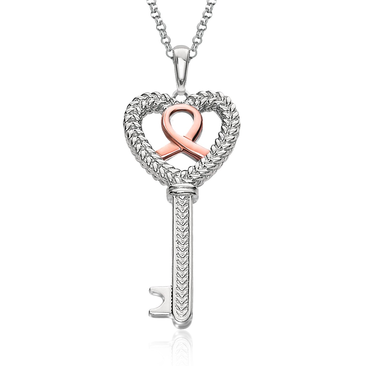 Show off your symbolic side when you wear this meaningful, reversible pendant. Rendered in a romantic heart motif, one side showcases a rose gold ribbon; turn it over and the ribbon is silver and adorned with .05 ct. t.w. of glittering pavé set diamonds. An 18″ cable chain is included.